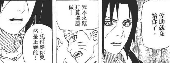 他只是将佐助走回正途的希望寄托在鸣人身上,但是自己也不再会阻止佐助的选择。