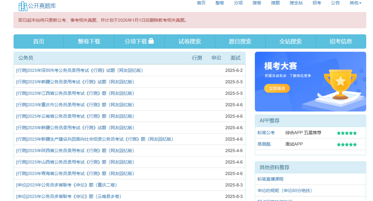 这是一个永久免费并且可以一键生成试卷的在线考试神器,网站自带超全题库,覆盖了46级公务员、计算机、建筑、财会、考研等等几乎所有主流考试科目,不管你是学生自测练习还是老师出卷,HR笔试,企业内训,他都能一键搞定