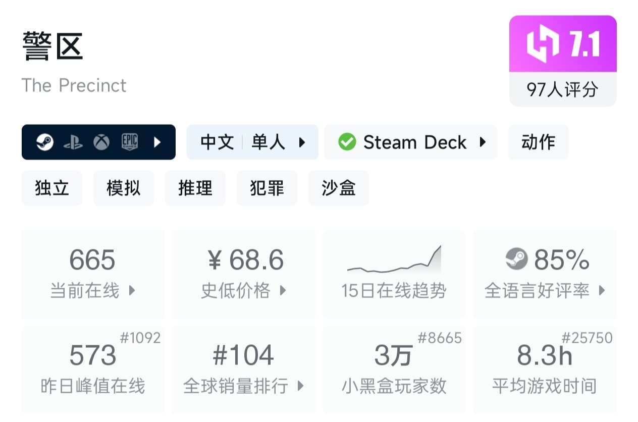 遊戲近期評價以及全部評價在Steam商店均爲特別好評!