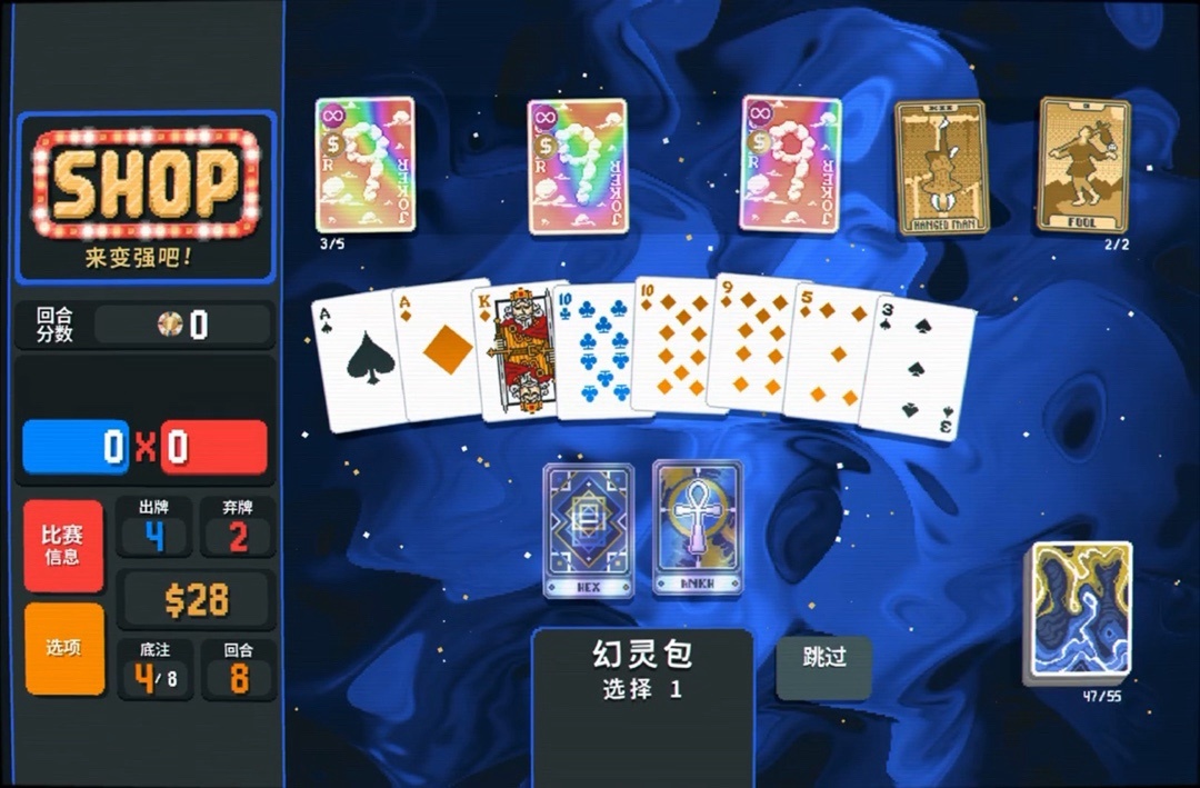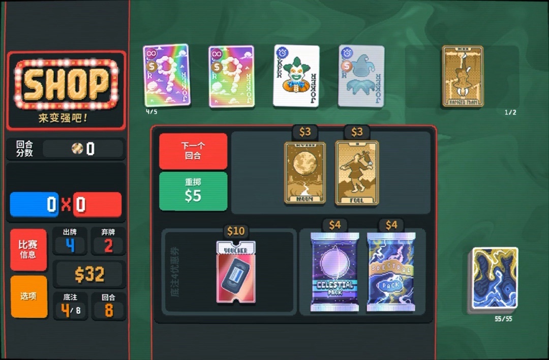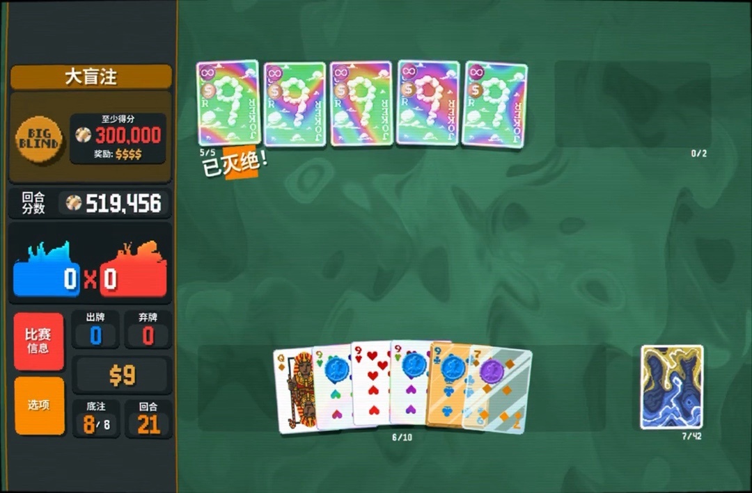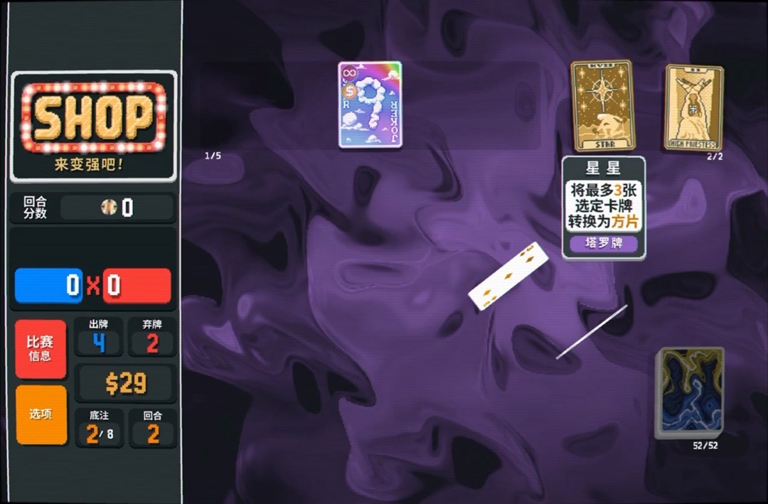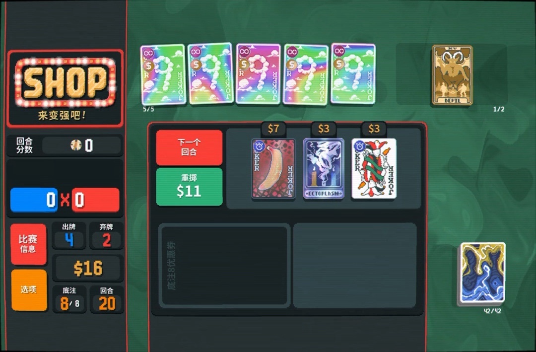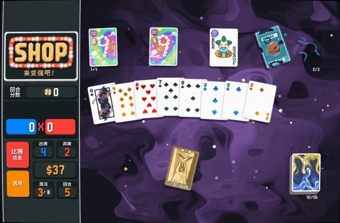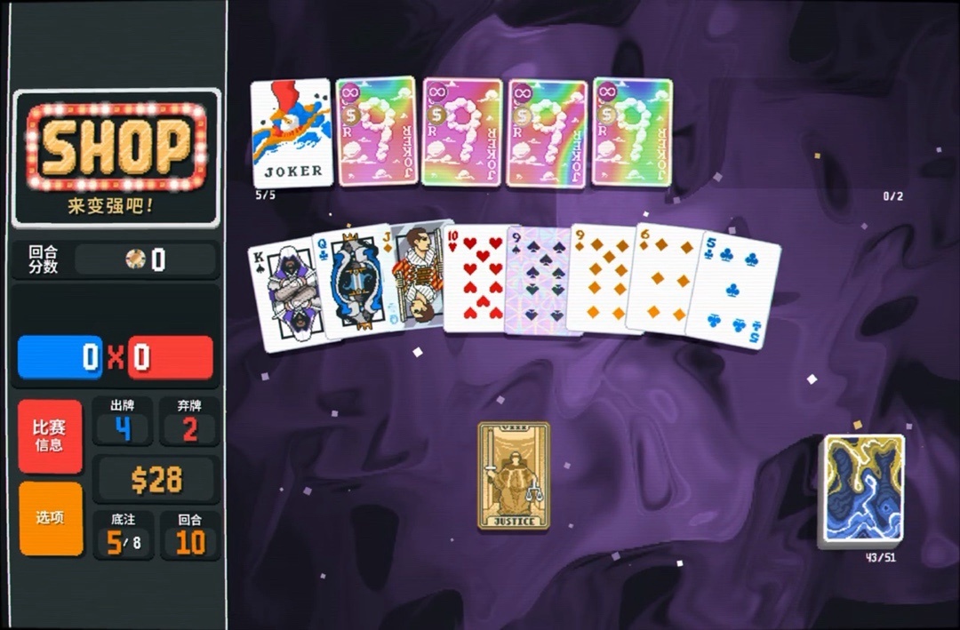 力量塔羅牌拿一下,直接可以把8變成兩張9,賺更多錢還能改造牌組打四條