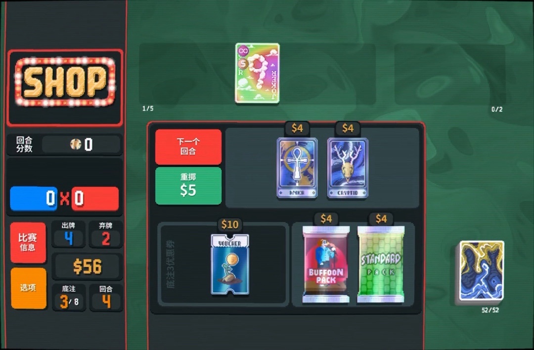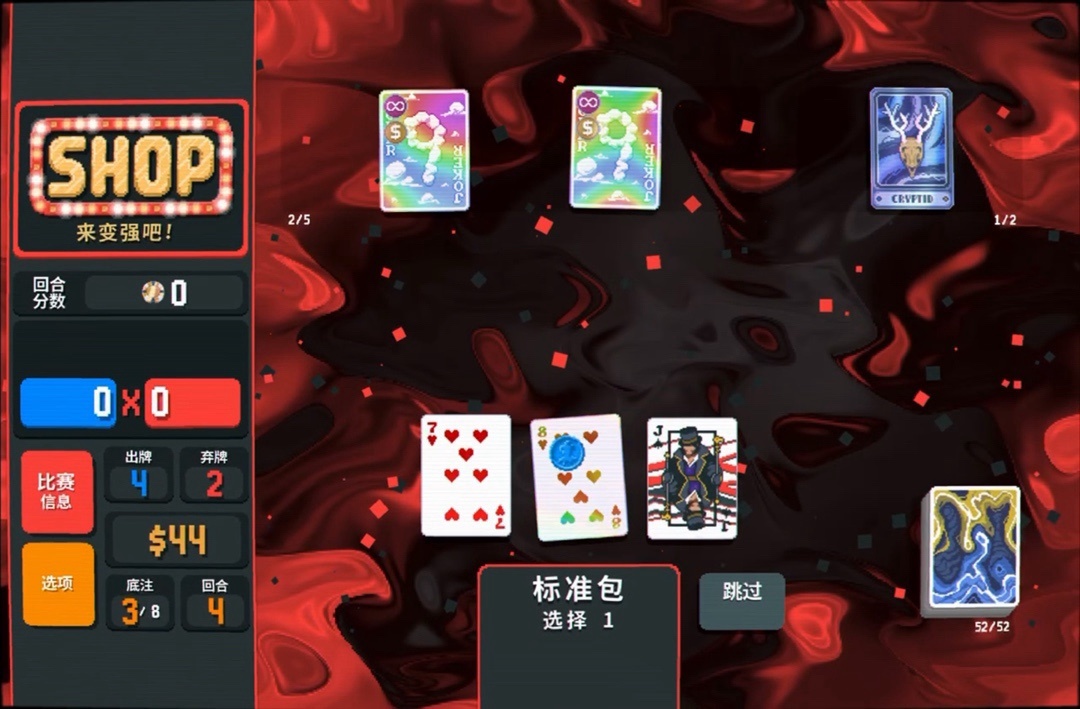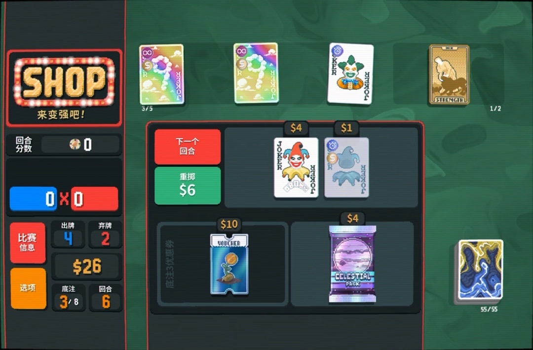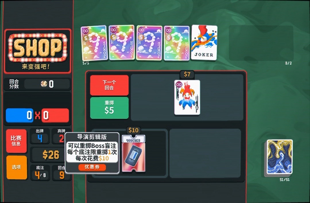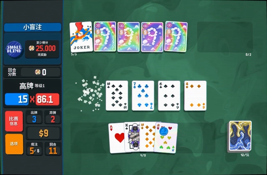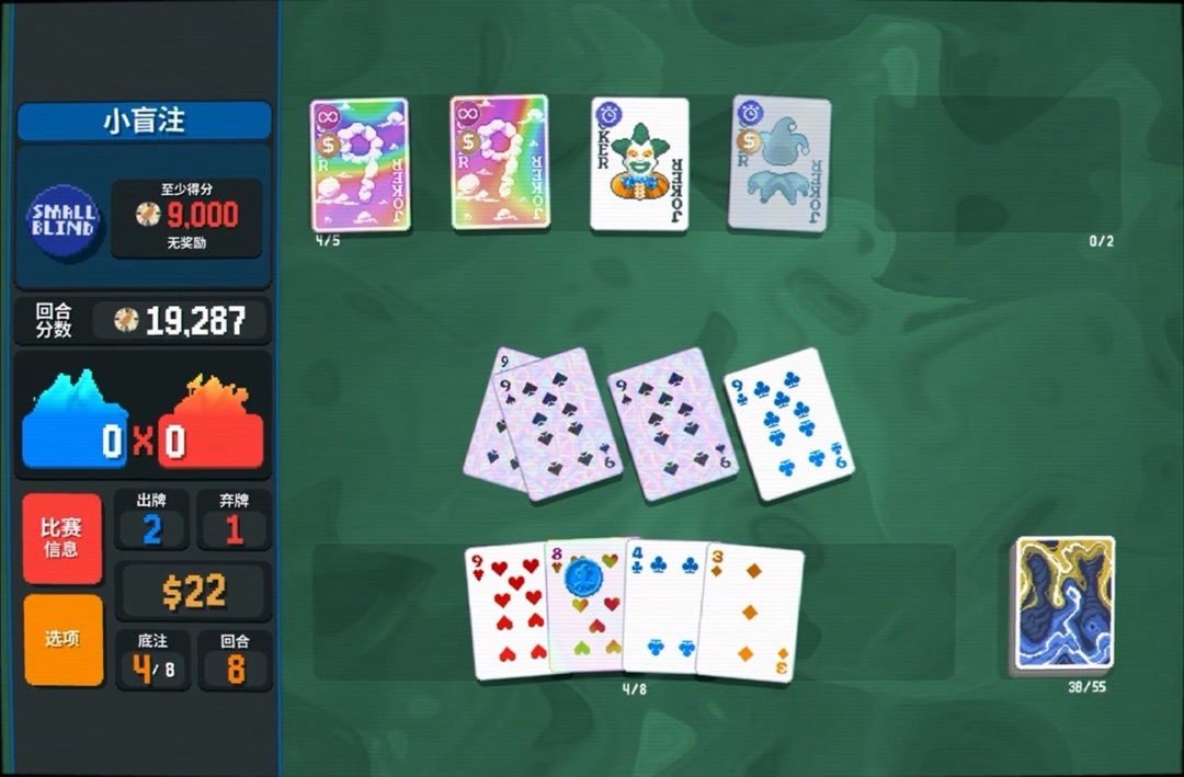 力量塔羅牌拿一下,直接可以把8變成兩張9,賺更多錢還能改造牌組打四條
