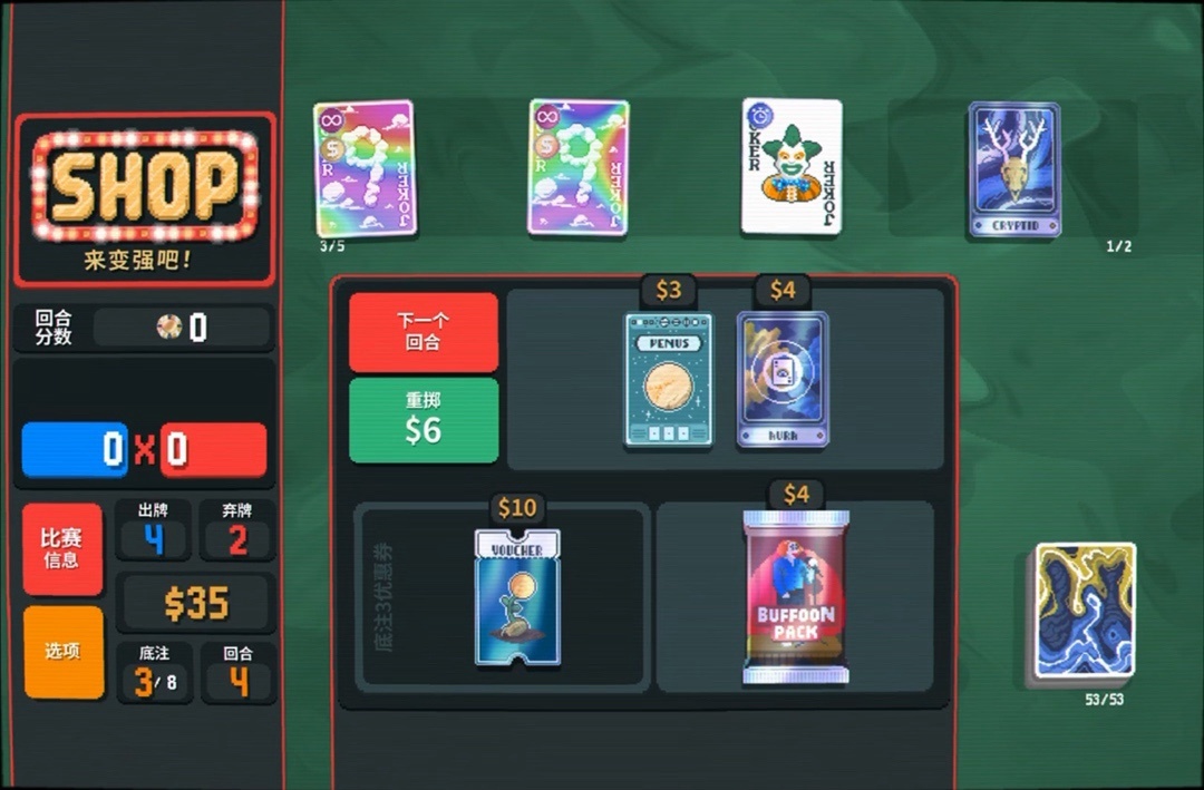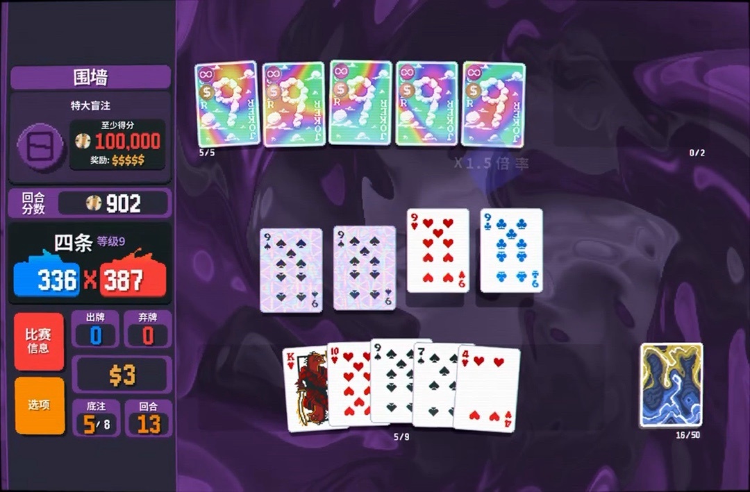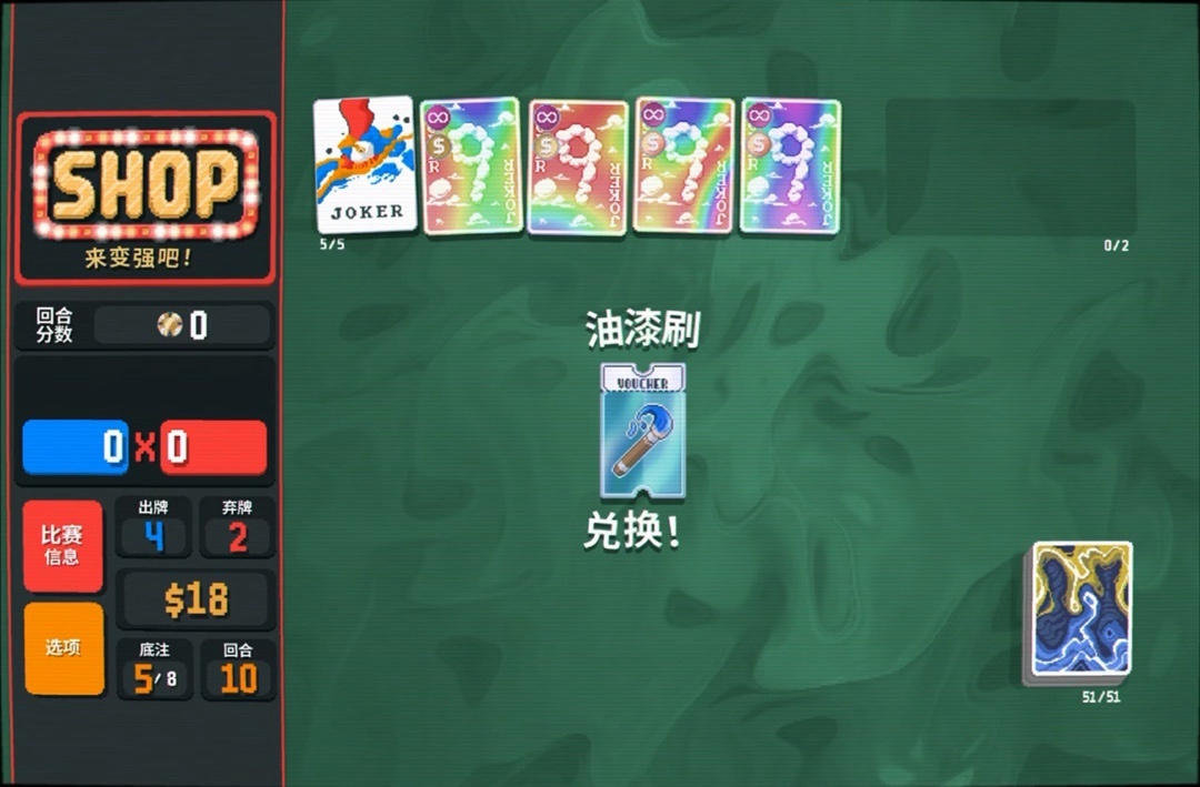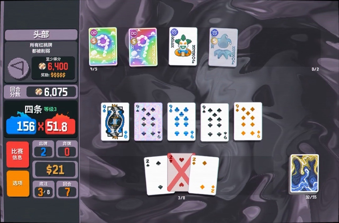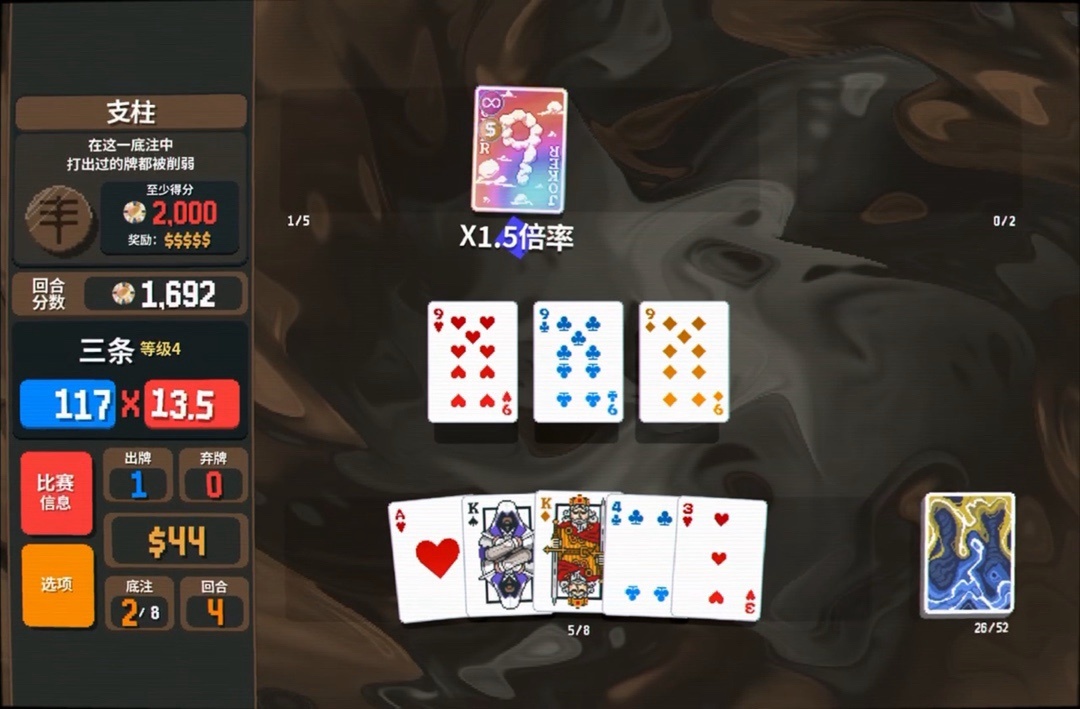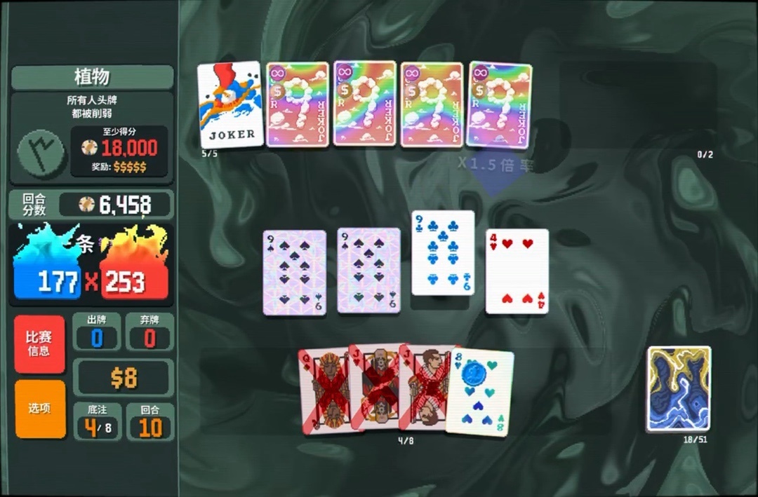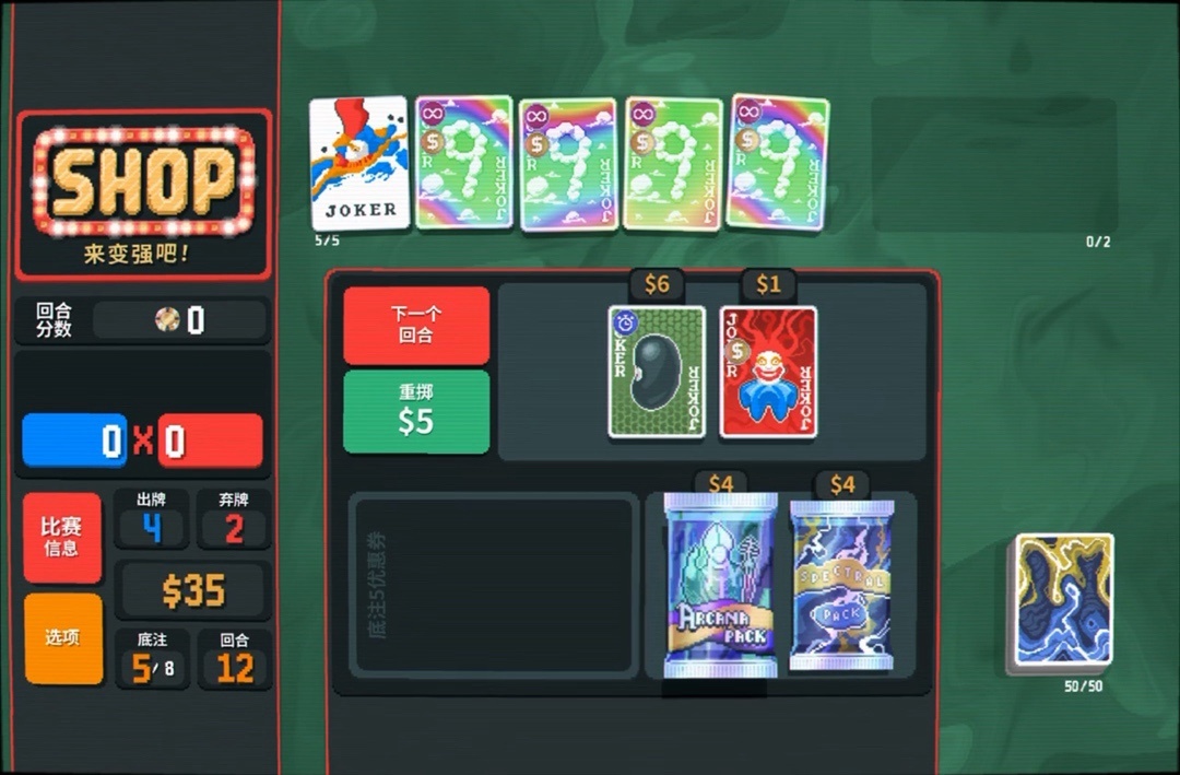 力量塔羅牌拿一下,直接可以把8變成兩張9,賺更多錢還能改造牌組打四條