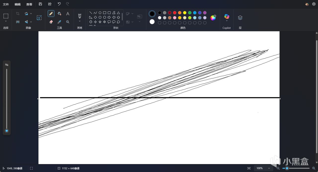 然后放轻松,随便在上面模左右匀速的去滑动你的鼠标,得到这种图,每个人发力不一样图不一样,如果横线是这种左低右高的话,把传感器度数换成正数,反之亦然