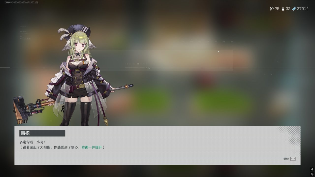 之后若选择和星熊对话,任务完成,增加10防御(最优选)