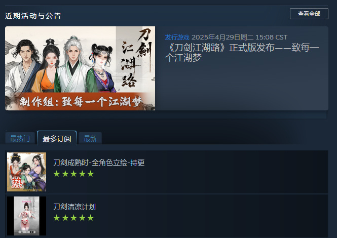 当然,其实还有绝世好武功,太吾绘卷,大江湖,这些优秀的国产武侠游戏不过他们的更新质量和内容量导致讨论的声浪并不大