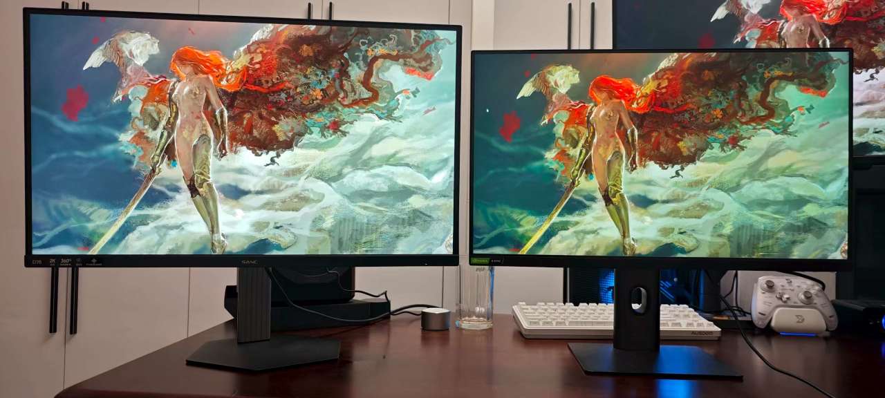 对于主要玩单机游戏的盒友,可以看看27寸色彩好点的屏幕,屏幕更大,单机游戏体验会提升一些。下面是27寸和24寸的对比