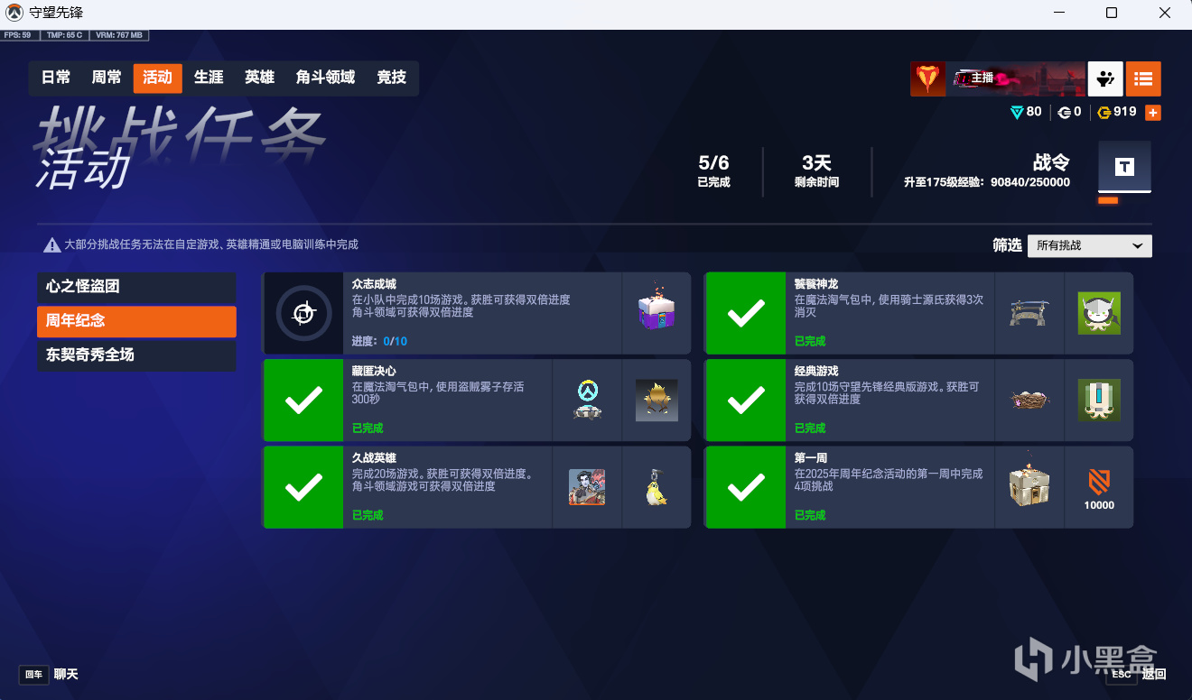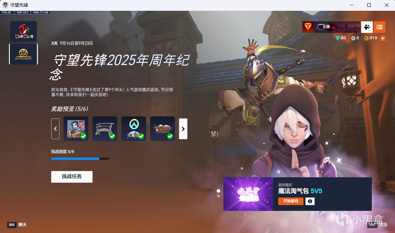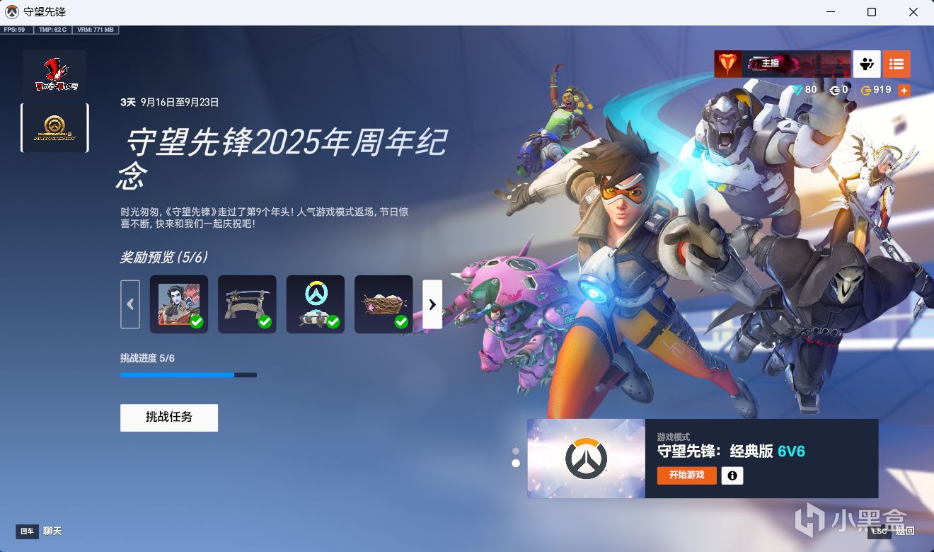 活动任务部分要求在躲猫猫和2016守望先锋6v6经典模式完成,另有紫箱组队任务。