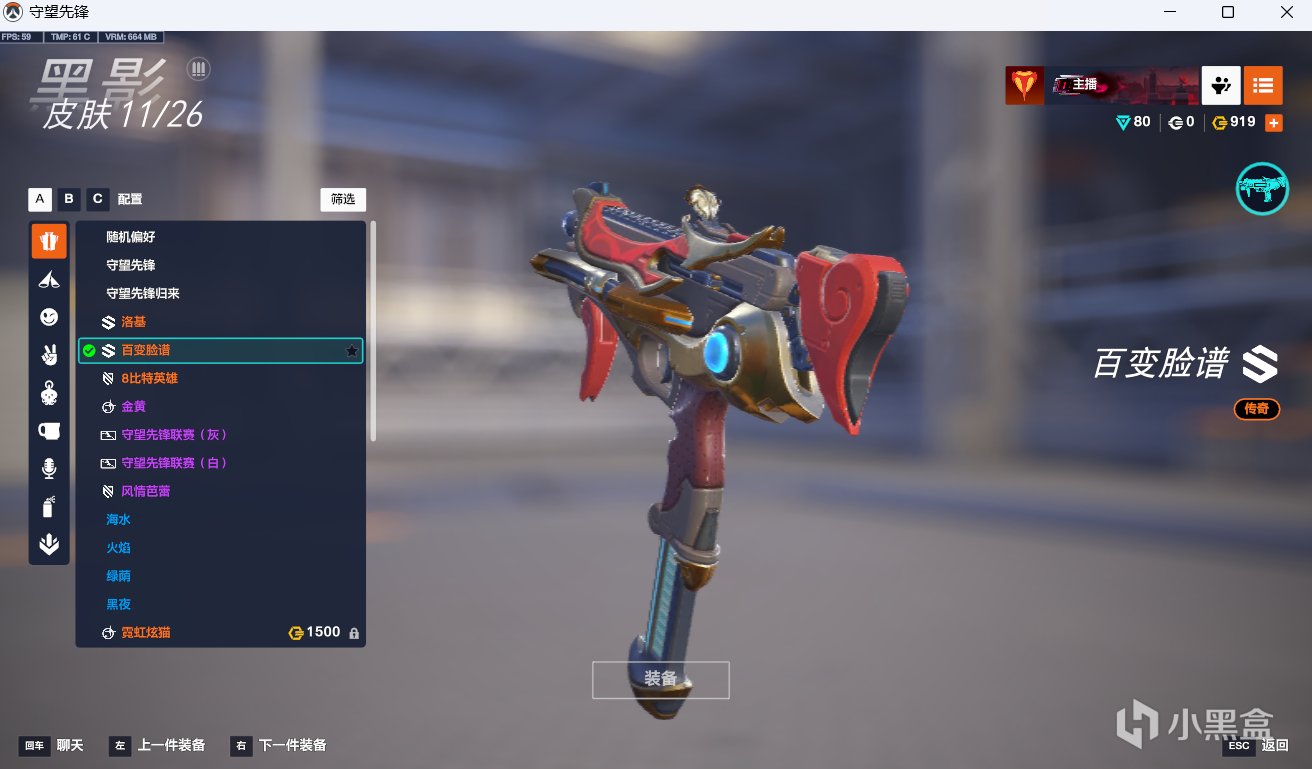 黑影皮肤,局外英雄选择界面会持续变脸谱,局内武器上拨片是脸谱造型,会在换弹、击中敌方等变换拨片脸谱。