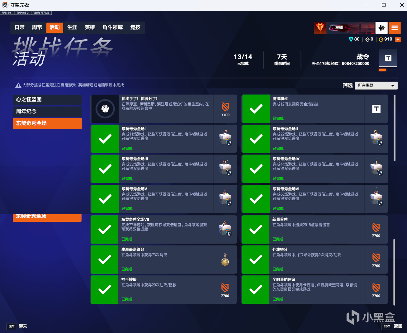 第二周黑爪与守望先锋成员互换阵营模式,经典安娜形态铁拳+2017版本;1紫箱1金箱。