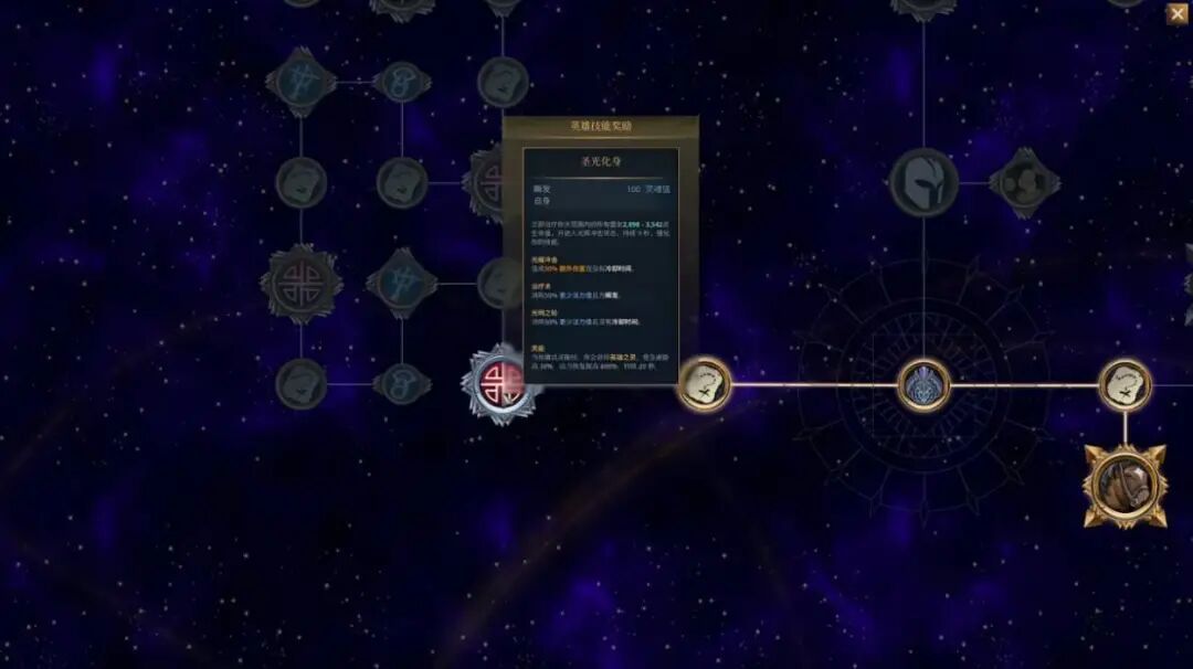與傳統MMO根據等級固定解鎖不同,《祕境戰盟》的角色天賦是根據你的遊戲進度解鎖。比如說累計通過16次副本,你就可以獲得所有的英雄技能(類似於終結技),解鎖所有的天賦頁,以及獲得一把免費的高裝等武器。而要點出所有的天賦,你就必須要不斷挑戰更高難度的副本,來獲得天賦點數。
