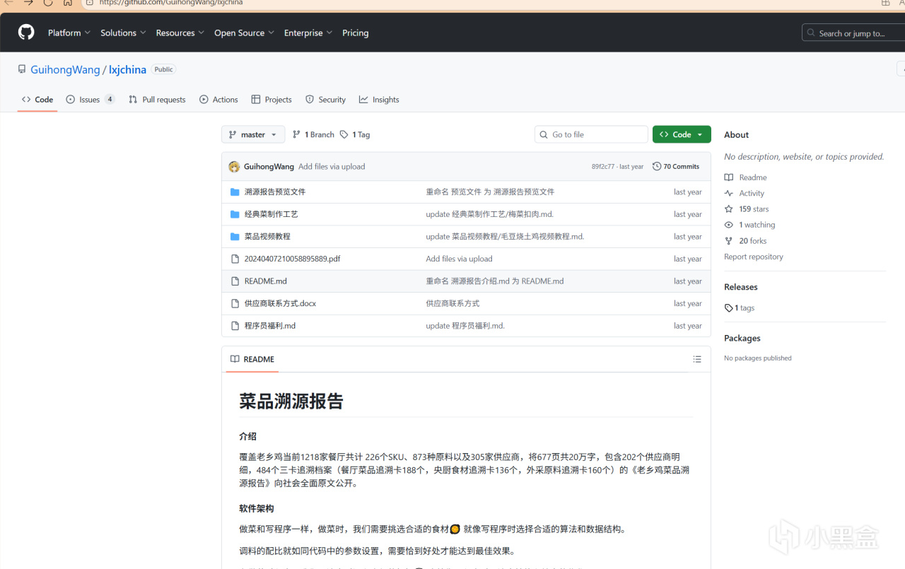 你沒看錯,就是那個滿是代碼、算法和極客精神的gitHub,赫然混進了一個畫風清奇的Repo:“老鄉雞菜品溯源報告”,裏面沒有一行代碼,卻寫滿了“宮保雞丁·調味配比”和“老母雞湯·燉煮時長”。