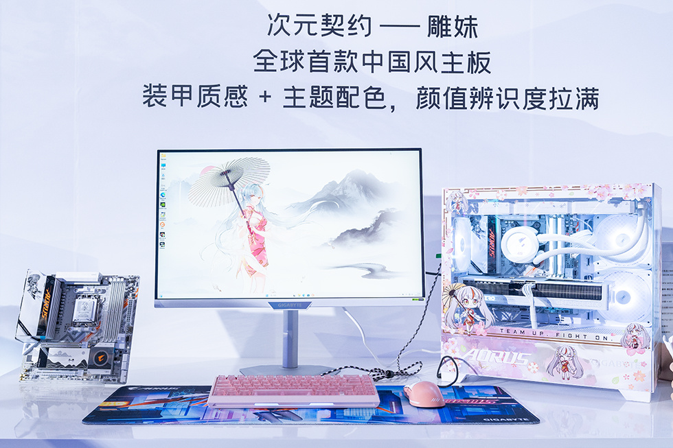 當然對於喜歡二次元IP的玩家來講,B850M 雕妹主板首創國風祥雲散熱片,粉色 PCB + 櫻花紋路,在外觀上打破傳統,讓 “女生裝機選黑色” 成爲過去式。