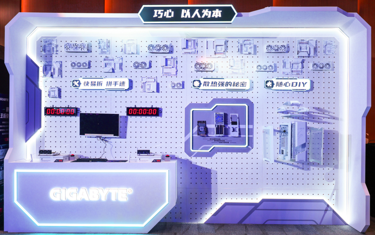 現場還特別設置了體驗區,展示了新一代的快易拆設計創新,無論是M.2、顯卡、WIFI天線都已經實現了一鍵快拆,更有最速裝機的比賽,可親手體驗快易拆設計帶來快捷體驗。同時展示了搭載新一代高效散熱模組的顯卡,採用獨家研發的服務器級高導熱凝膠材料,在確保卓越散熱性能的同時,充分保障系統運行效能。另一亮點是"機械雕"機箱,其創新性全模塊化架構設計尤爲突出——側板、硬盤架等關鍵組件均支持自由拆卸,爲用戶提供高度靈活的個性化改裝空間。