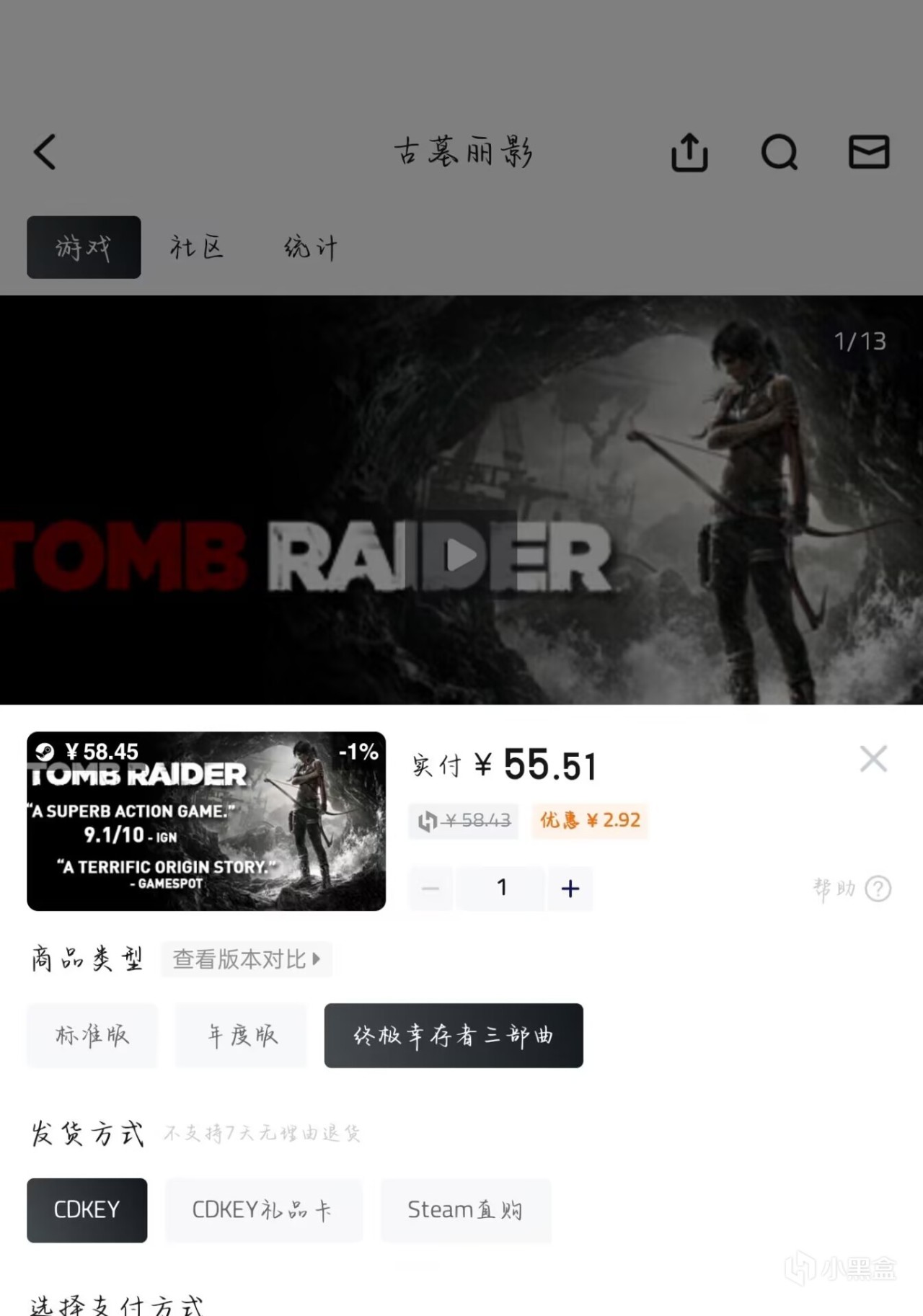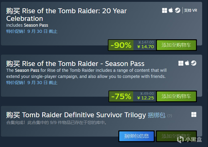 3 小黑盒有捆綁包,花更少的錢買三部曲,點擊下面這個古墓麗影,點擊三部曲,55買三部