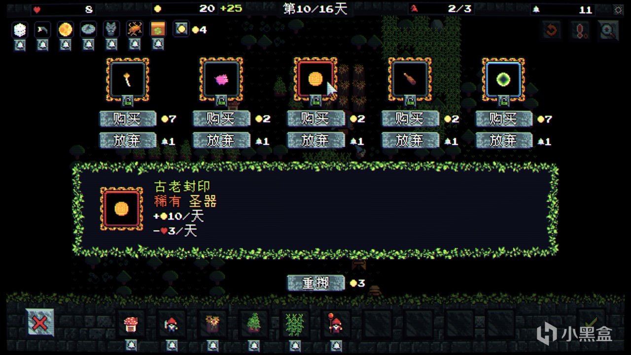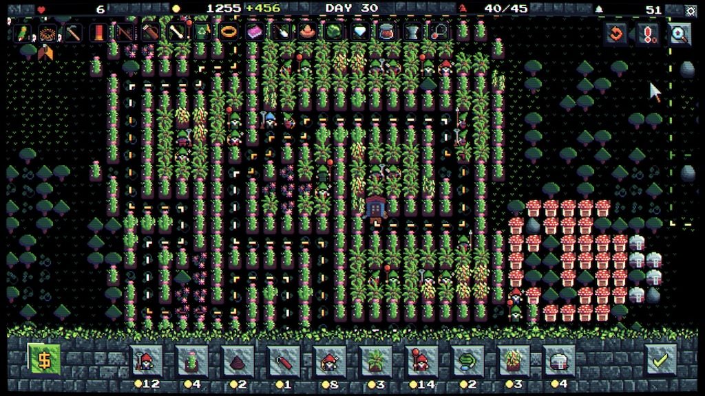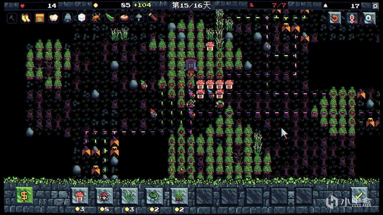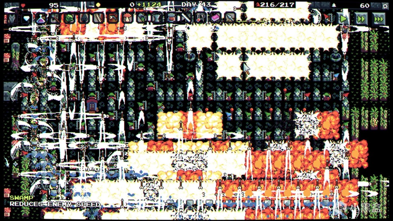 《矮人防线》用最简单的像素风,构筑了许多个不同环境区域的地图当关卡,森林、沼泽、沙漠等等应有尽有,每次进入的地图还都是随机生成的。不同的环境区域里会有相应更好生存的植物,而大多数植物就是我们防守之路上的经济来源。至于要怎么将经济来源最大化,就要看我们的“卡组构筑”能力了!这需要一点运气,还需要一些游戏理解力!