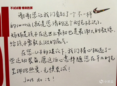 母親則得到定製運動裝備,衣物上都縫着和舊書包一樣的 “媽媽牌” 耐克 logo。