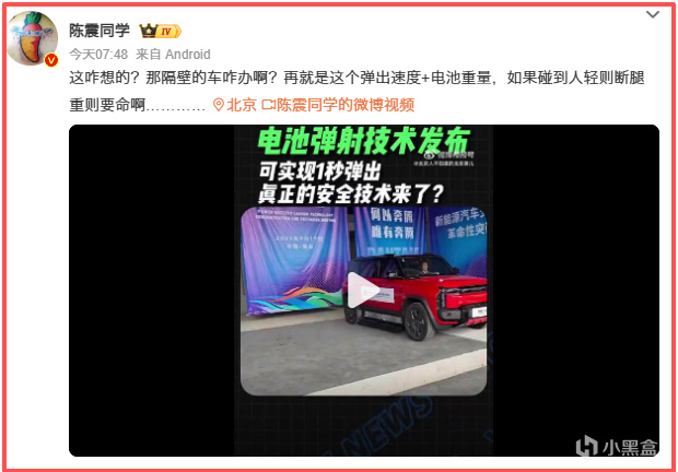 不过,随着讨论的深入,这项技术的争议也逐渐显现。知名汽车博主陈震同学在发文提出疑问:“这咋想的?那隔壁的车咋办啊?再就是这个弹出速度 + 电池重量,如果碰到人轻则断腿重则要命啊”。