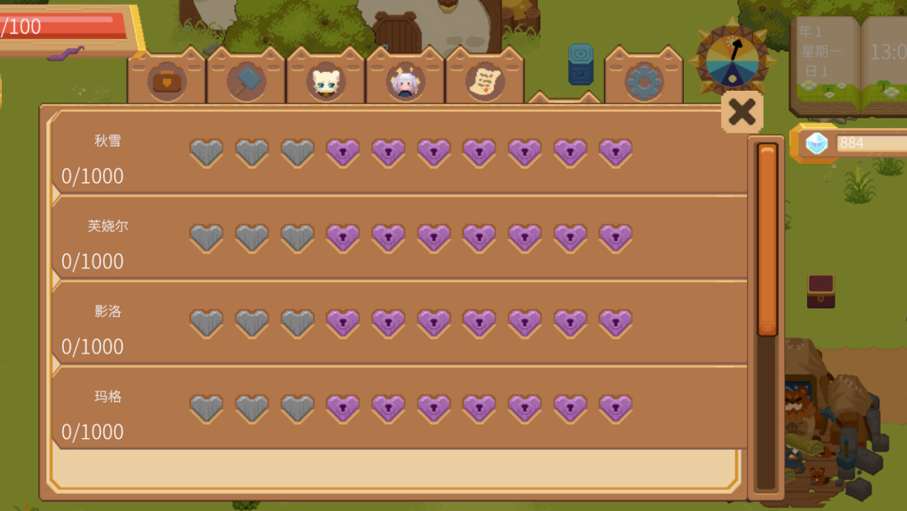 遊戲中可以通過交談、送禮、任務以及一些小遊戲等提高NPC的好感度,從陌生人到朋友再到可能的伴侶關係