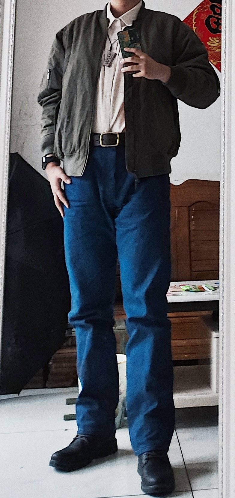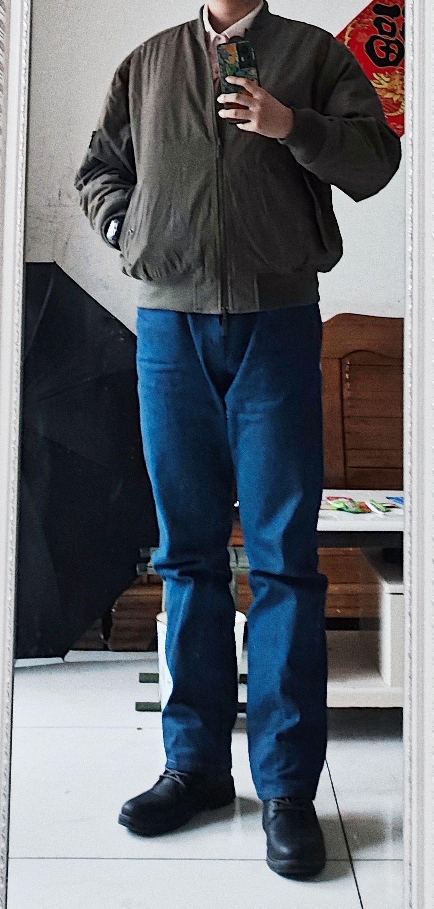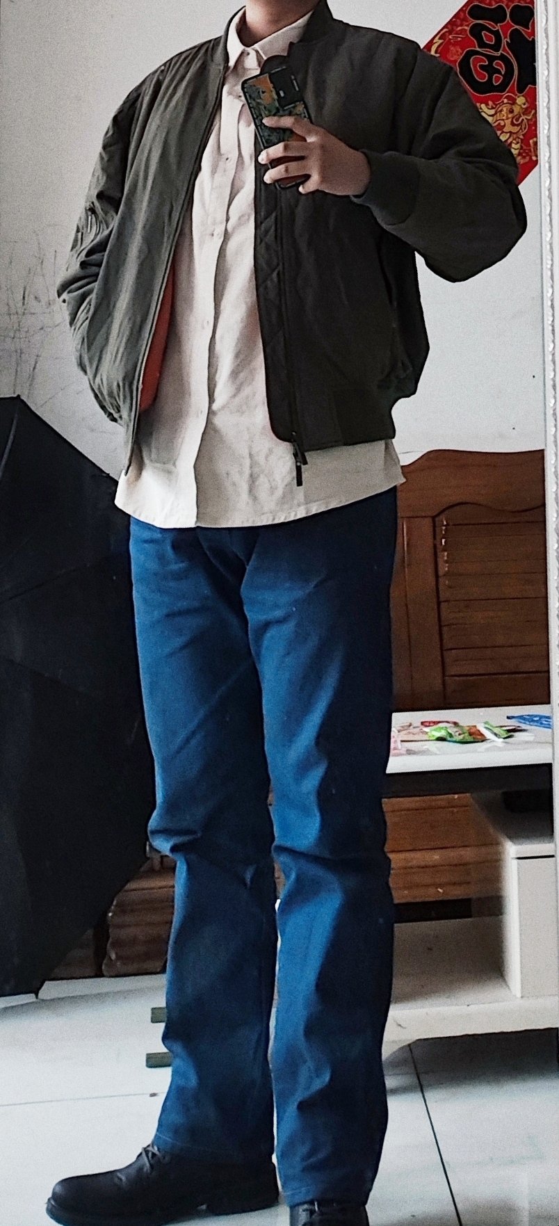 我穿的这件是bgsd家的飞行员夹克,在拼多多卖50,领了券买会更便宜。这个夹克的不一样的地方是它的外衣是纯棉的,而且织布密度很细,质感很棒。内衬是成色的聚酯纤维,里面加棉,穿个保暖内衣可以穿到零度左右。再一个它巨显肩宽,而且颜色饱和度较低,很适合搭配其他衣服,此外,这个价格他的拉链和扣子竟然还都是定制的。