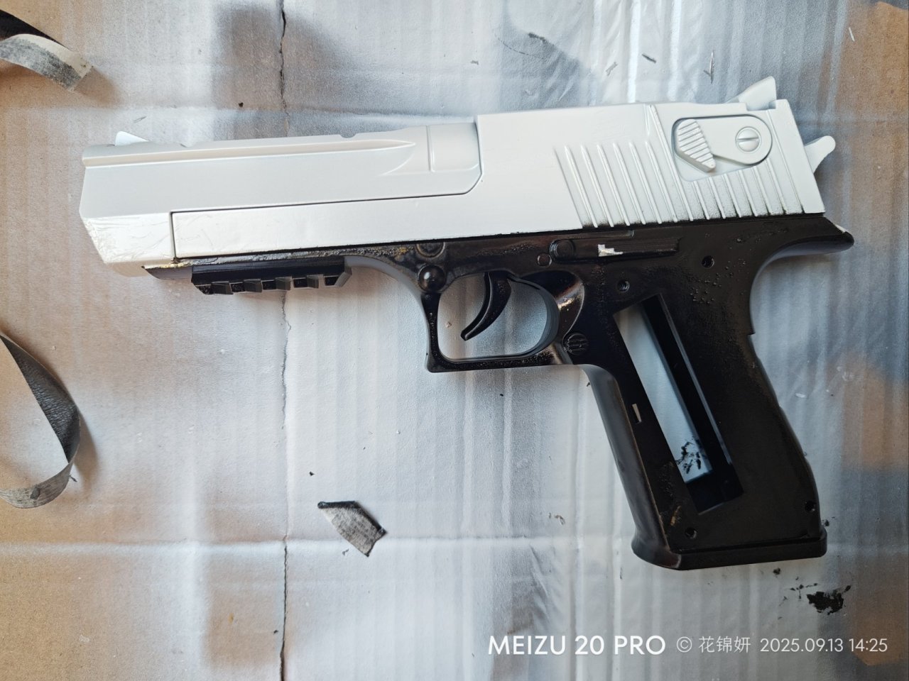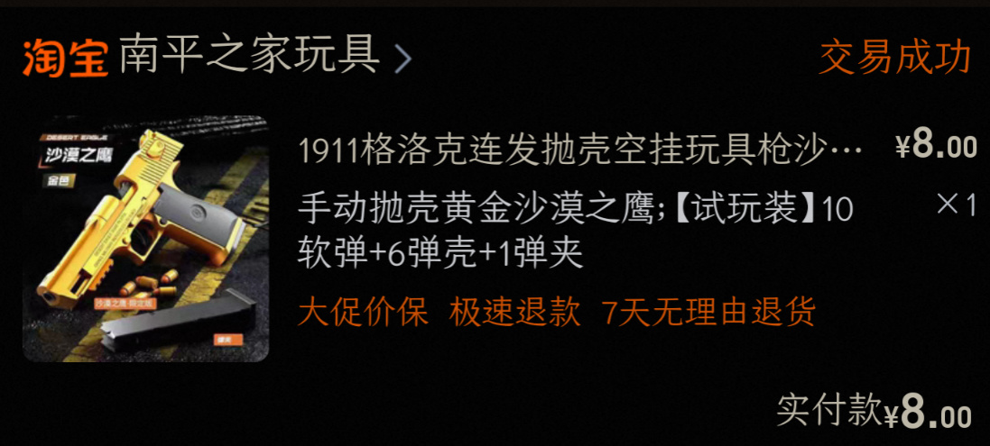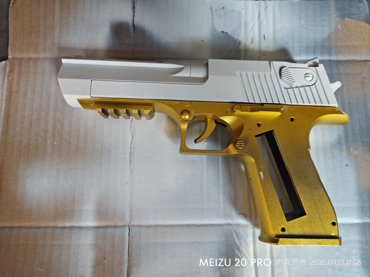 於是我找到了這個,有拋殼軟彈功能的黃金沙鷹,括號 全塑料材質安全兒童玩具 括弧