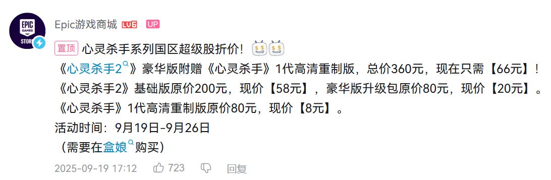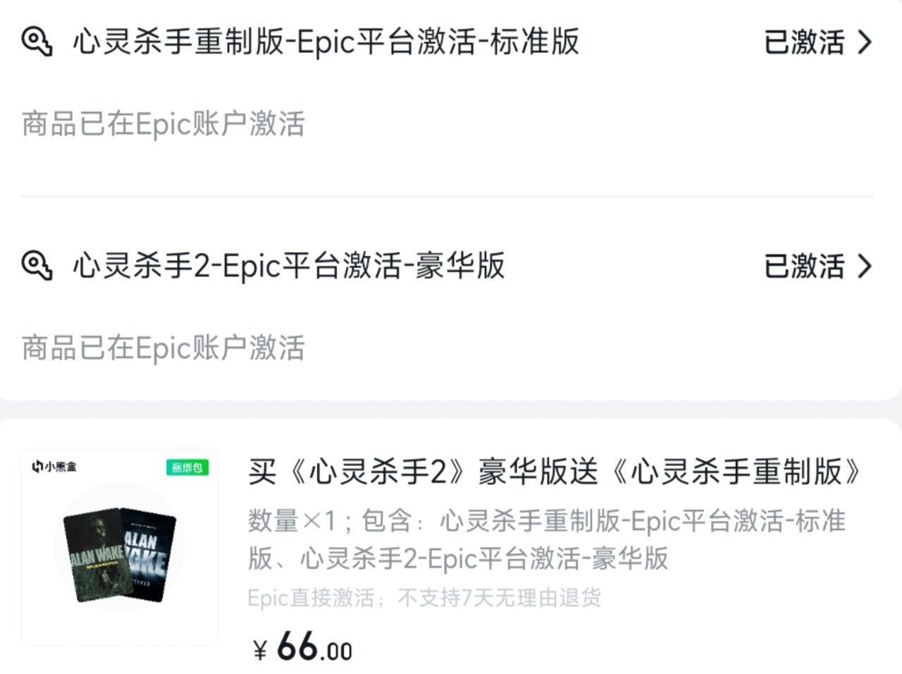 這次E寶盒娘聯手活動,《心靈殺手》標準版8元,《心靈殺手2》標準版58元,《心靈殺手2》豪華版66元(附贈《心靈殺手》標準版)。