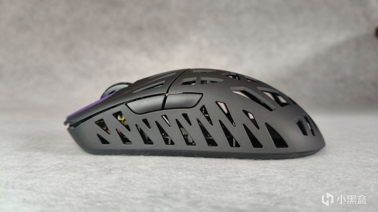 鼠标微动是TTC防尘金微动,回弹力度很强声音很清脆,表面涂有类肤图层质感相当不错,整体重量在52g左右,镂空下来这个重量其实还是有点偏重,但是用起来定位和手感很强,对镂空鼠比较感兴趣的值得推荐。