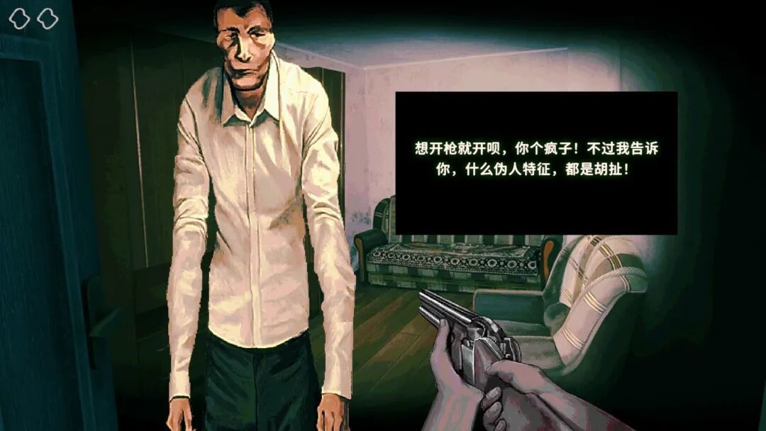 首先,這遊戲裏誰都像是僞人,我記憶中的人類不應該是這鬼樣子。其次,遊戲裏有大量干擾項,且每次你掏槍對準住戶,他們就會開始辯解,讓你難以判斷其身份。