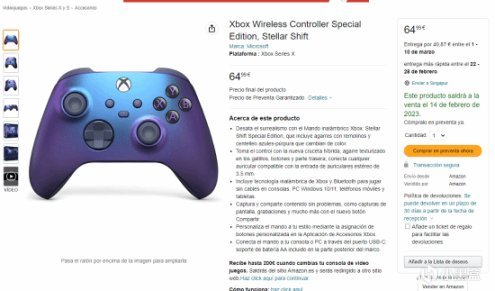 之前不是曝光了XSX|S手柄新配色在了一些欧洲国家的亚马逊网站上。售价64.99欧元,折合人民币475元。