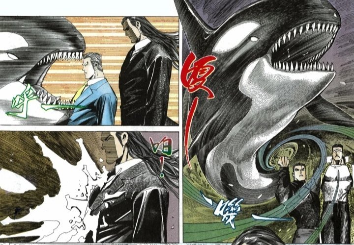 可堅定立場的首男又怎會坐視自己義父被殺,取出當日奧加贈送的令牌並捏碎,鯨的氣勢重新回到奧加的身體裏。