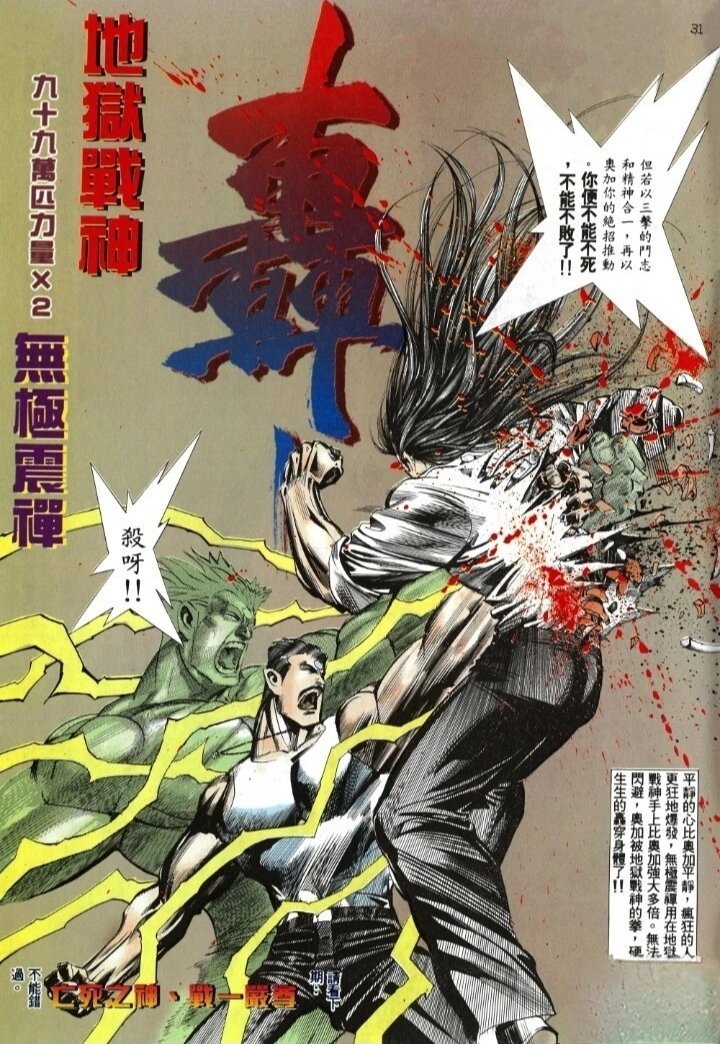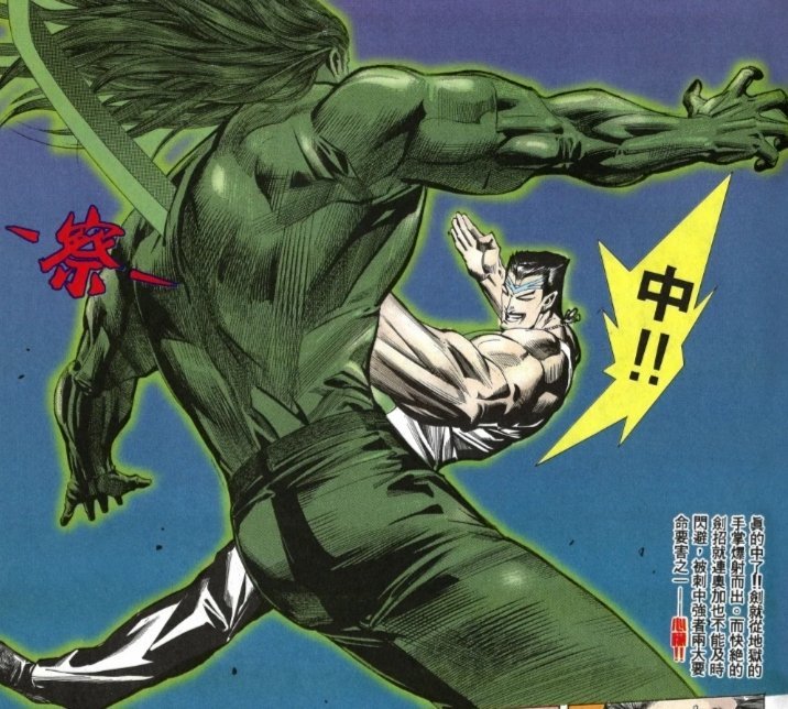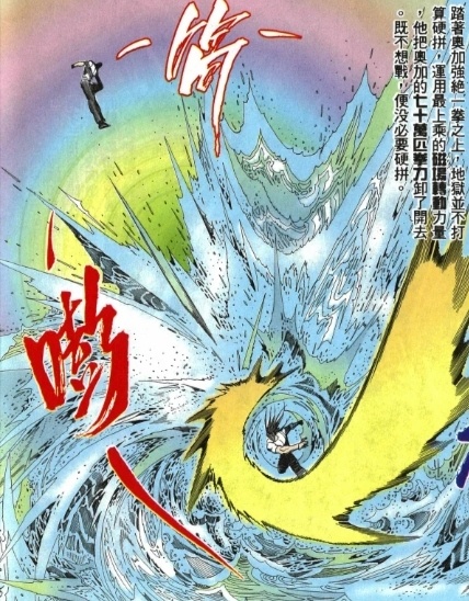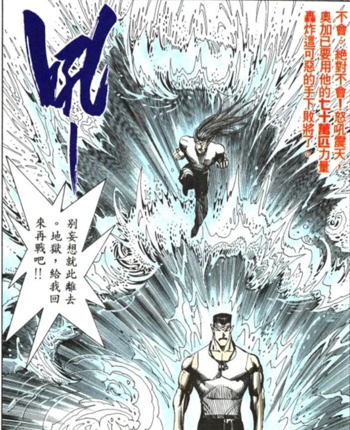 當地獄劍勢弱下時,奧加順勢轟出一記殺鯨霸拳,可地獄本就不想與奧加再戰,所以便藉着這一拳脫身。