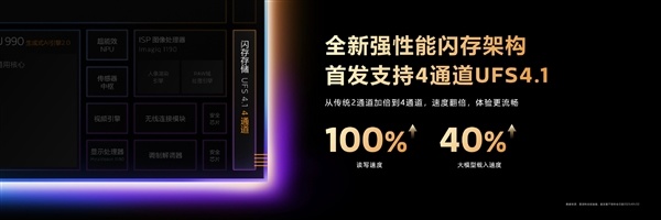 全新強性能閃存架構則首發支持4通道UFS 4.1,讀寫速度直接提升100%,AI大模型載入速度也提升40%。