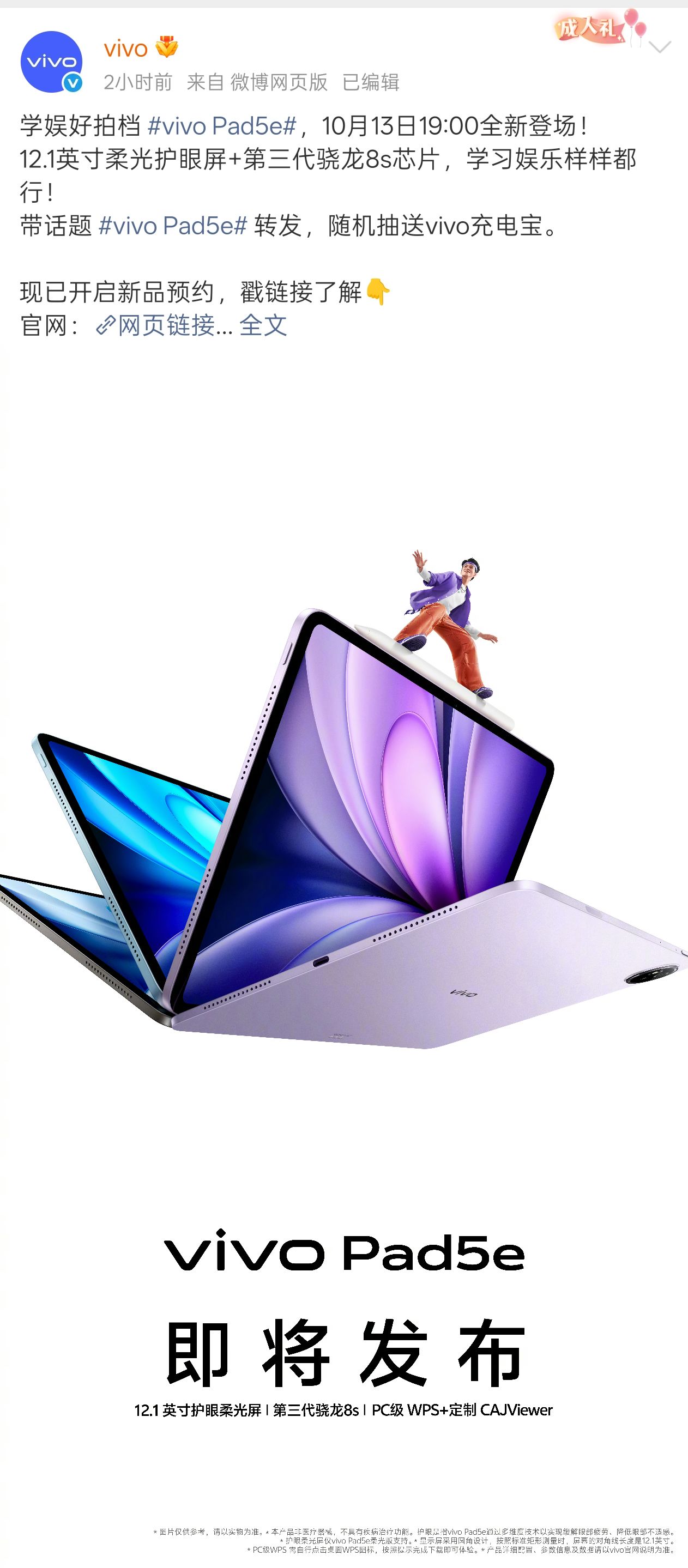 随X300系列一起登场的,还有vivo的中低端新平板Pad5e(采用第三代骁龙8s处理器)以及新无线耳机TWS5,新智能手表WATCH GT2。值得留意的是,vivo将在10月10日发布origin OS6系统。