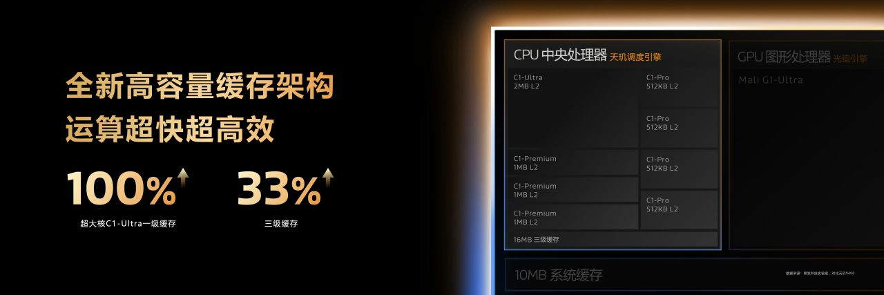 最最最后,贴一张今天下午联发科公布的天玑9500处理器简介长图这次CPU理论跑分无论单核还是多核都拉平了苹果A19Pro单核提升百分之32,多核提升17,超大核CPU最高频率4.21GHz,GPU峰值性能提升百分之33,大概率依然干不过同代高通三级缓存堆到了16MB,搞出大小核双NPU架构。
