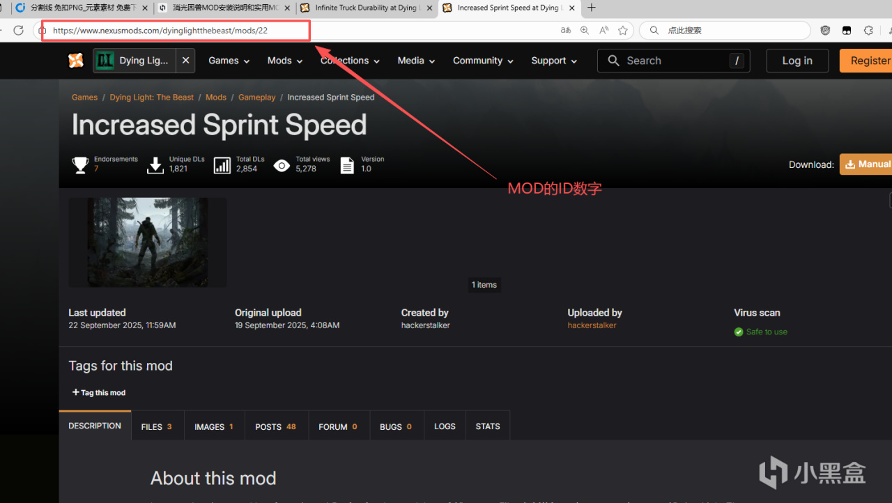 将这个数字修改为上面提到的ID然后回车就能来到对应的MOD页面,然后愉快的下载吧。