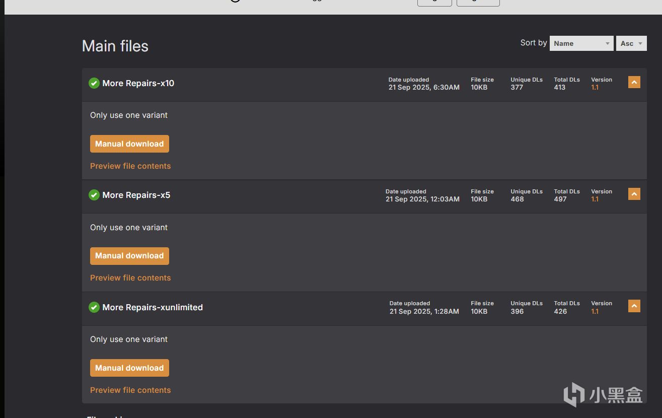 MOD修改了游戏中所有近战武器的维修次数,有3个版本,分别是原版5倍维修次数、10倍维修次数和无限维修次数。