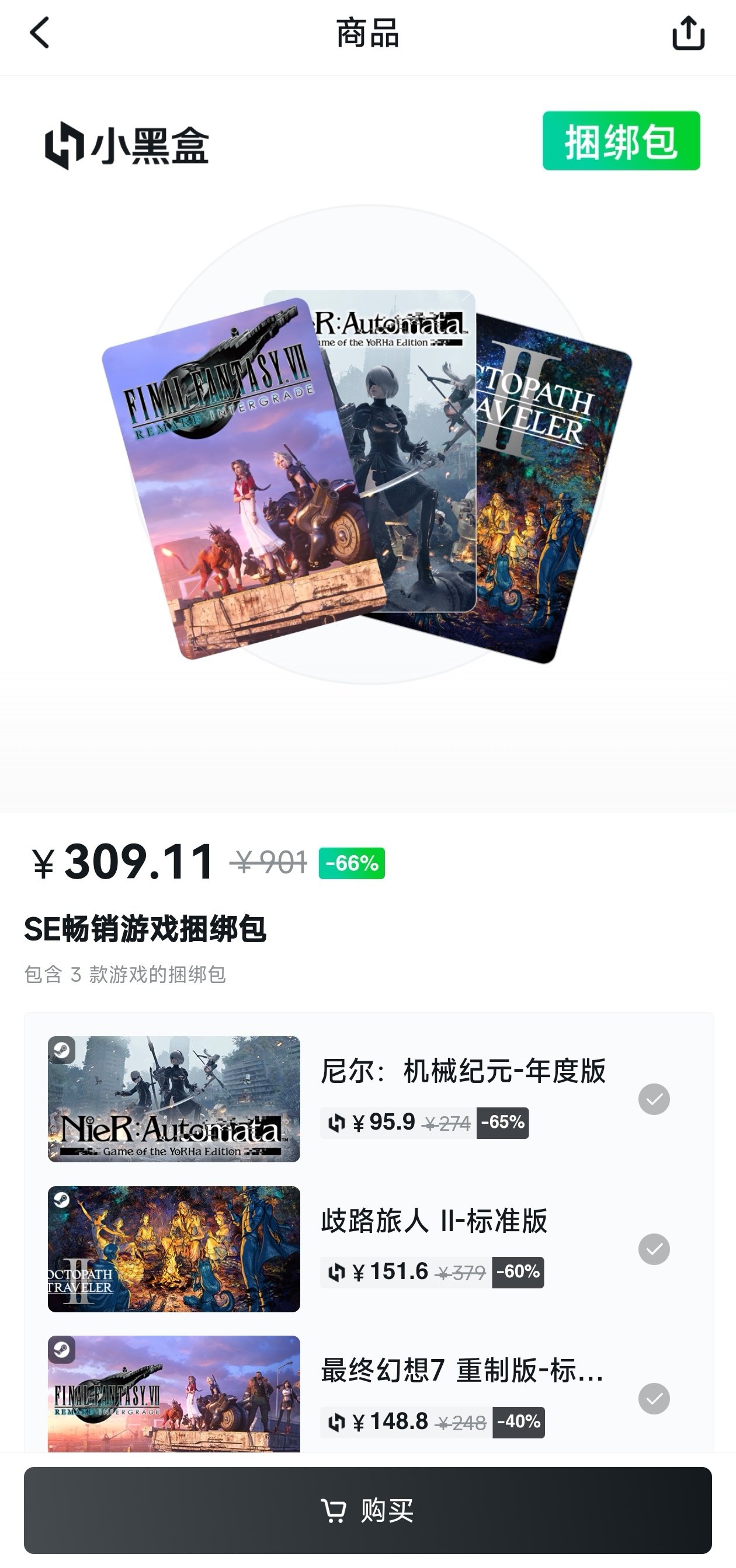 SE三款人氣遊戲捆綁包上架黑盒商城,均價不到100