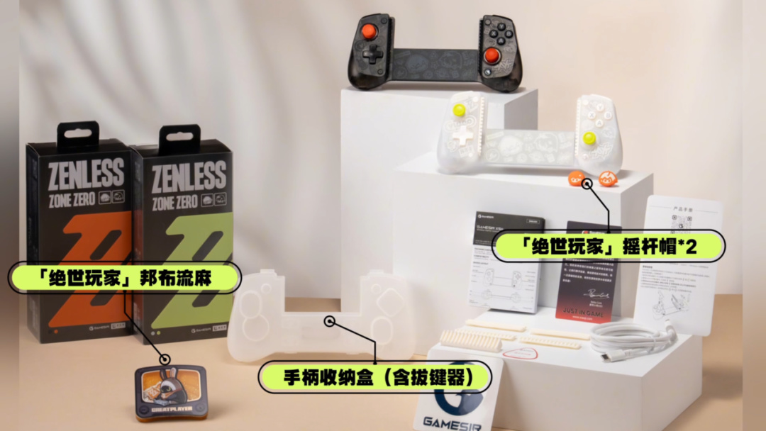 X5s蓝牙无线拉伸绝区零联名款手柄,则附赠了「绝世玩家」摇杆帽*2,