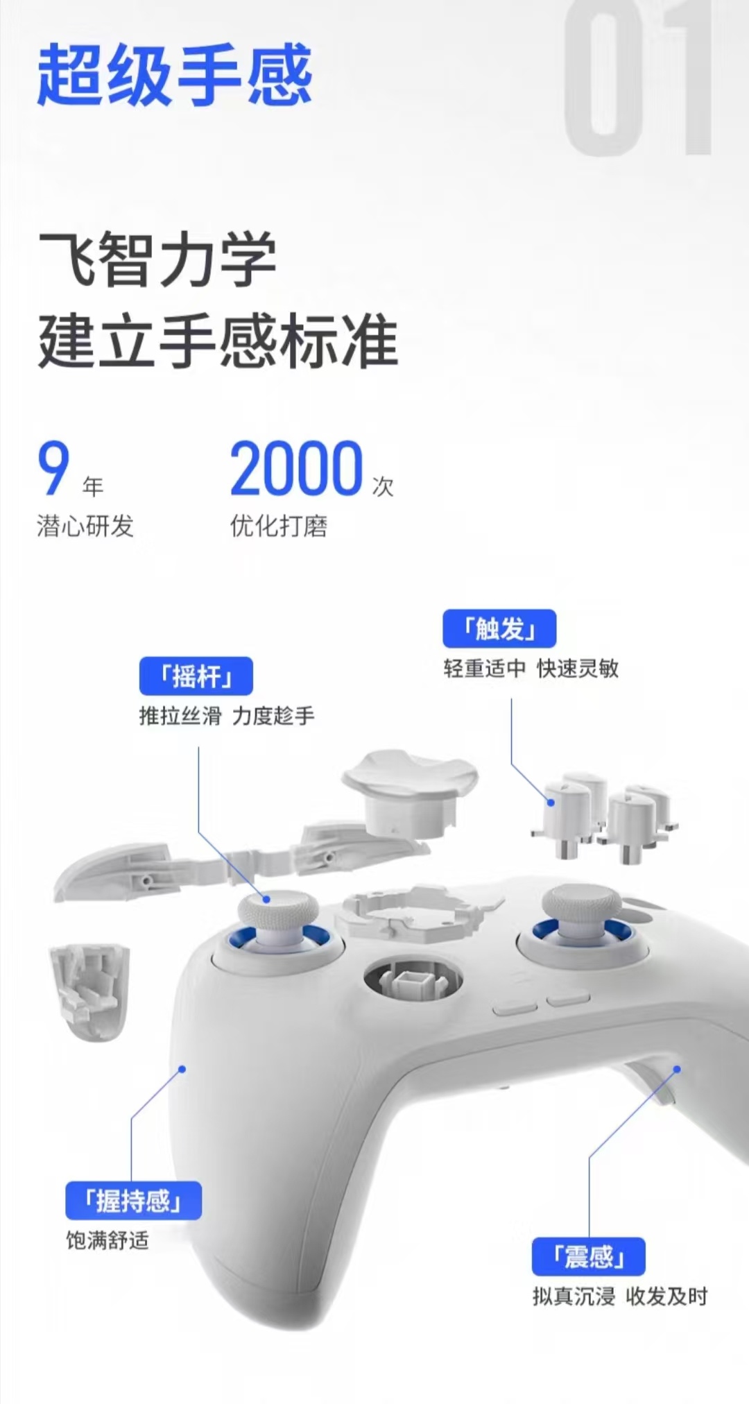 你别看现在冰原狼3的性能称不上优秀,在刚发售那会热度相当的高,主要原因还是它的摇杆采用的是自研的杠杆摇杆,其性能要明显优于市面上清一色的霍尔摇杆,并且手感也非常独特,有一说一,飞智在手柄界的创新性确实没得说。
