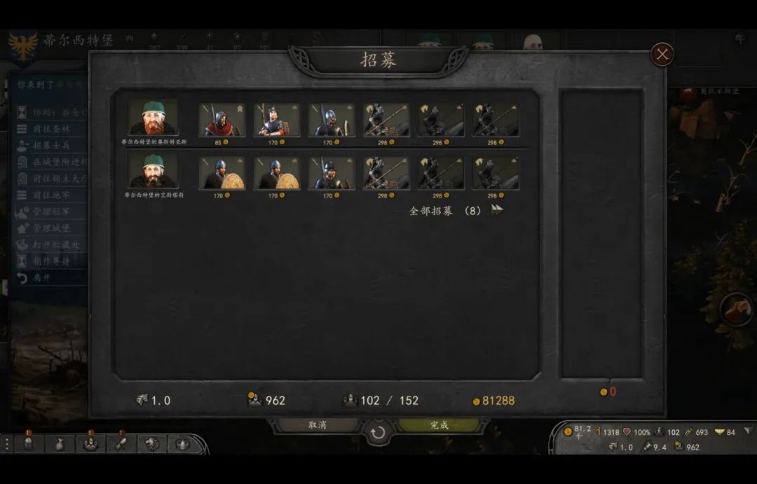 當家族等級達到可擔任僱傭兵或者直接效忠的程度後,就能招募對應勢力的士兵了。