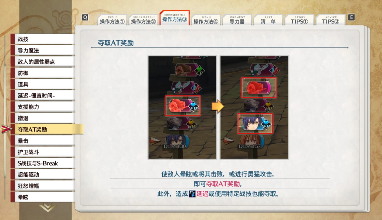 除了个别普通战技之外,大多数S技也拥有抢夺AT奖励的作用。善加利用这套功能,可以使一个角色行动时,获得多重AT奖励。