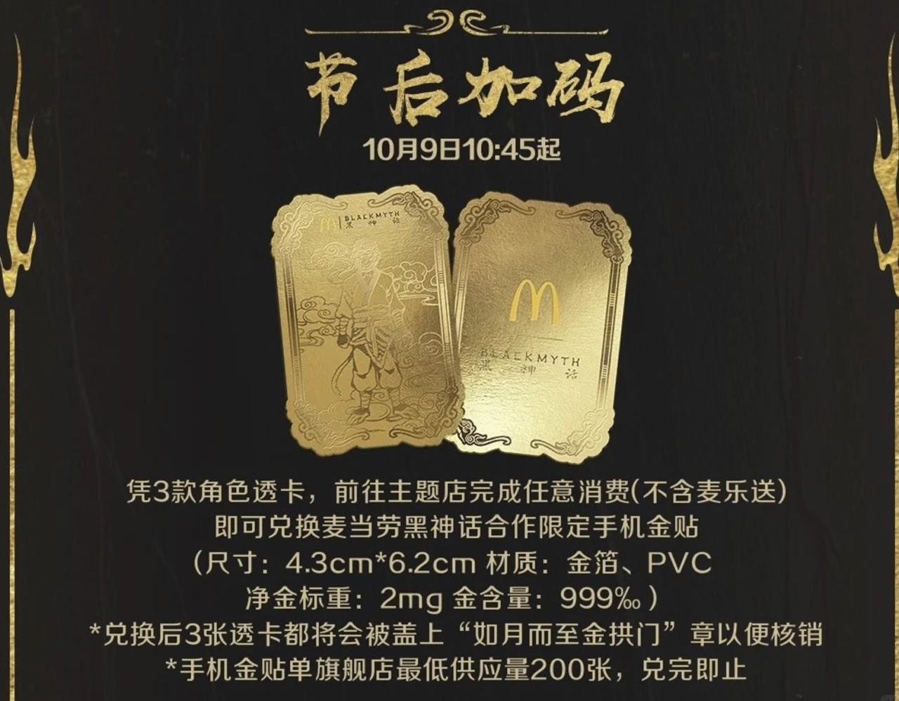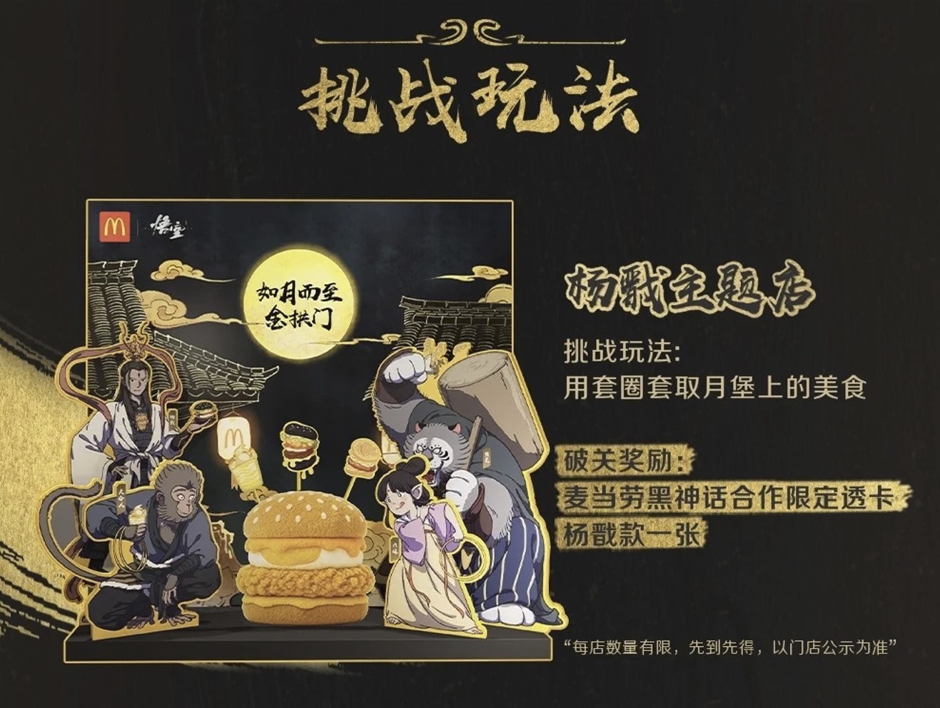 今日,麦当劳 ✖ 《黑神话》合作限定角色透卡、中秋限定美食(联名包装)正式推出。