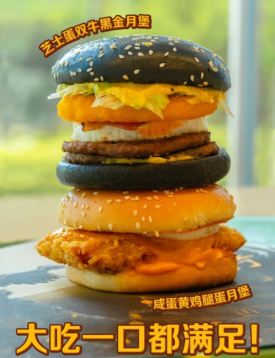 中秋限定美食:芝士蛋双牛黑金月堡、如意脆脆虾、如意金箍扭扭薯、咸蛋黄大福风味麦旋风、黑金奶黄年糕风味派、桂花酒酿风味圆筒、咸蛋黄鸡腿蛋月堡等(23号正式上新)。