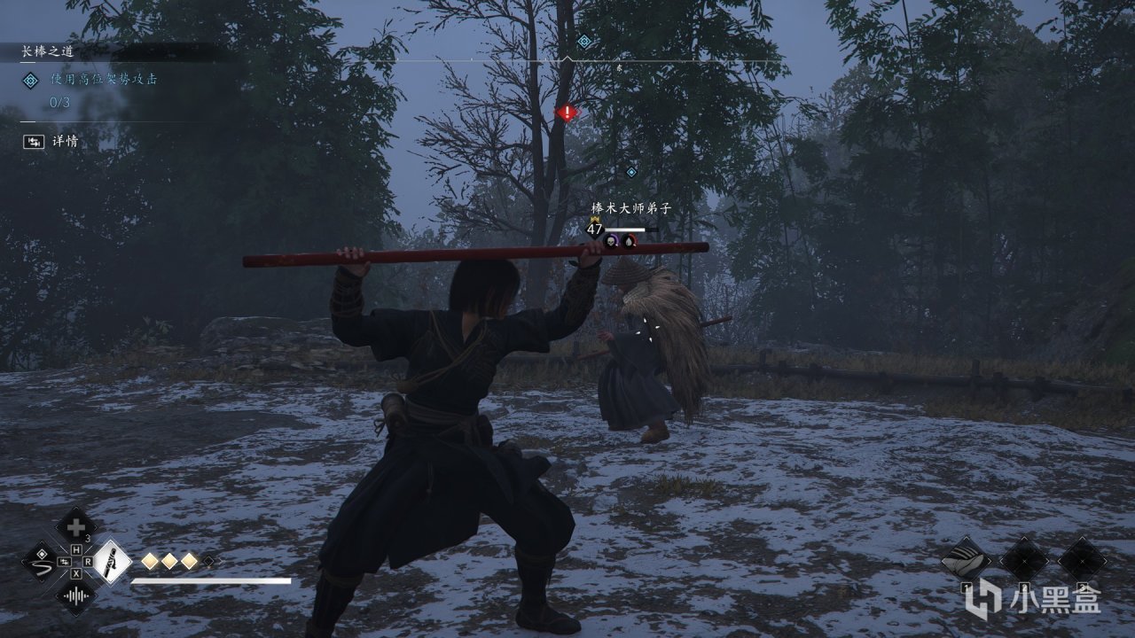 新追加的武器棍子在玩法机制上也更多样化,三种架势能够针对不同的对战场景,整体的上下限也明显要比其他武器更高,不过因为我没有深入研究使用过,就不展开细聊了。