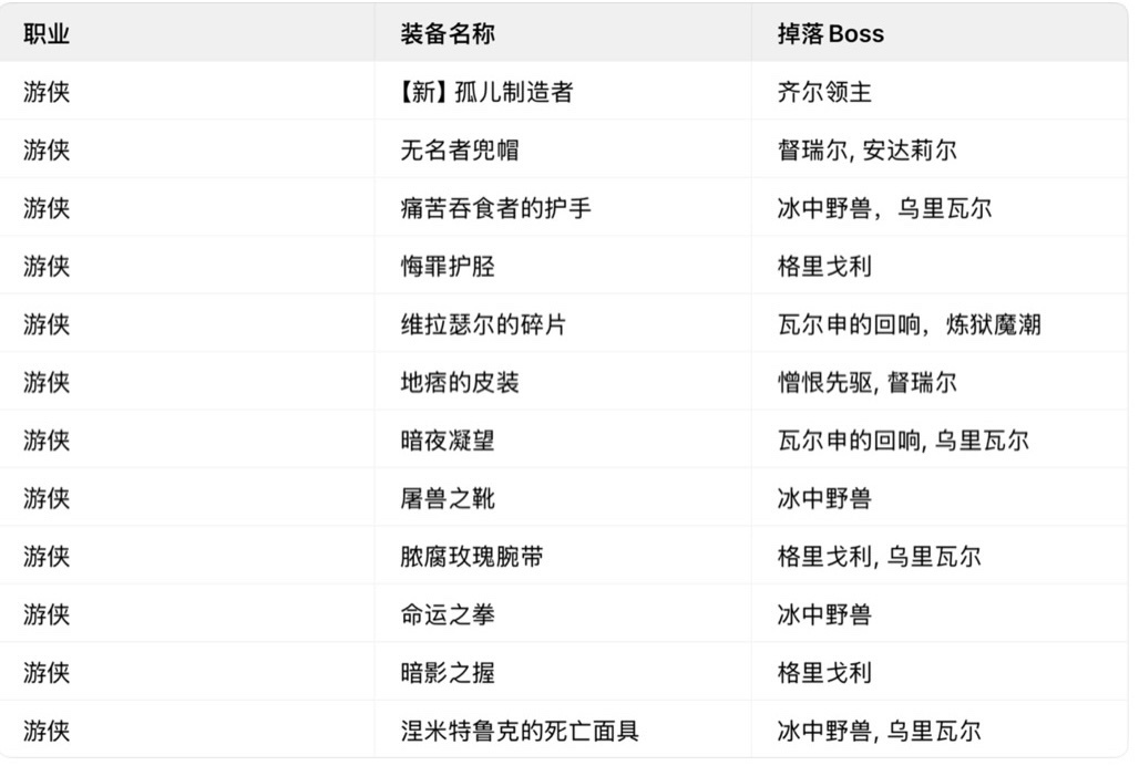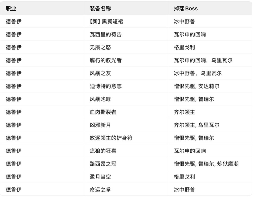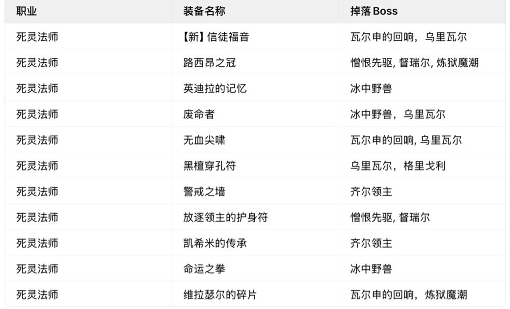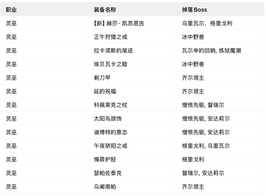 整理了一下各职业各Boss对应装备的掉落,后续会出巫师60级之后的配装,从这里对照即可。其他职业的也整理发出来了,等有时间再补充boss对应门票和门票掉落的位置。