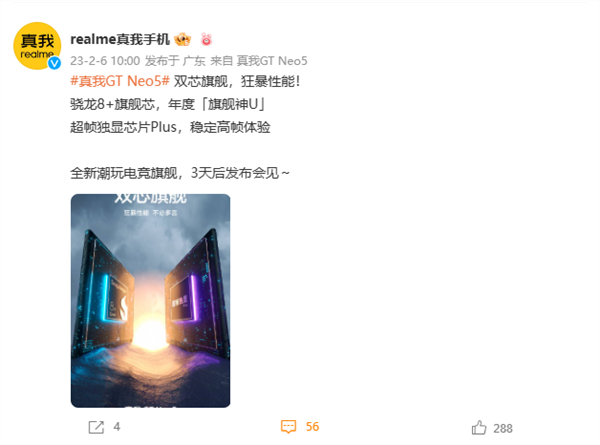 realme真我手机将于2月9日下午14:00召开新品发布会,正式推出240W快充旗舰——真我GT Neo5。