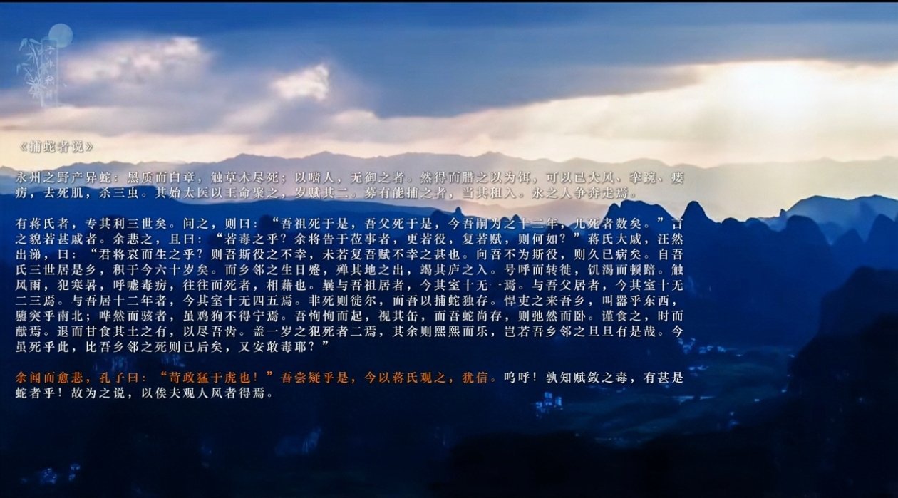 在永州的这些年,我慢慢学会了如何在孤独与沉寂当中找到自己的安慰,我带着我曾经的痛苦跟孤独写下了那一首《江雪》: