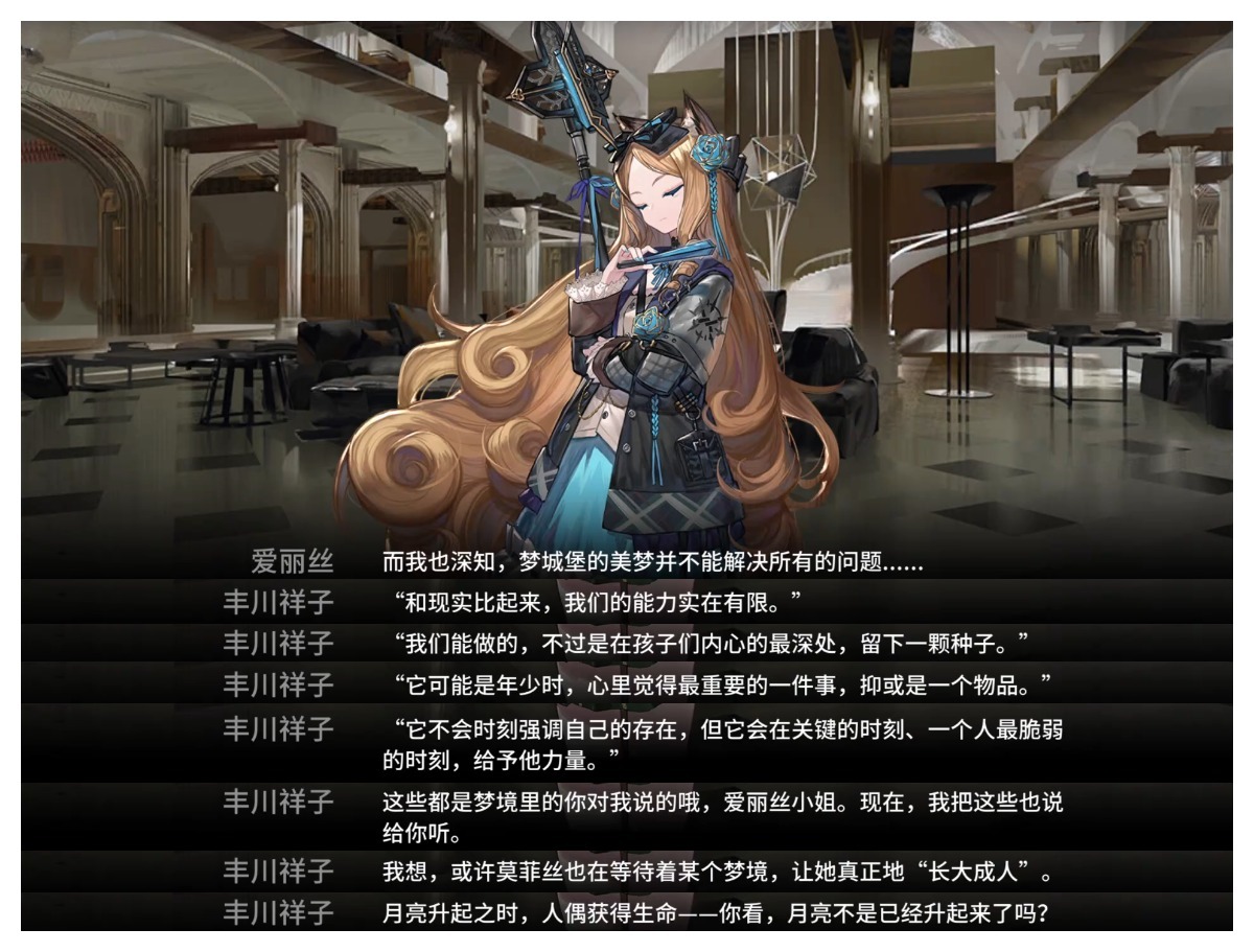 出乎意外的,莫菲絲見證了祥子等人從自己完美的造夢中甦醒,祥子在夢中獲得面對現實的勇氣,同樣的,一顆鼓起勇氣重新面對過去的種子,一顆從夢中汲取力量的種子,也在莫菲絲的“心”中默默種下。