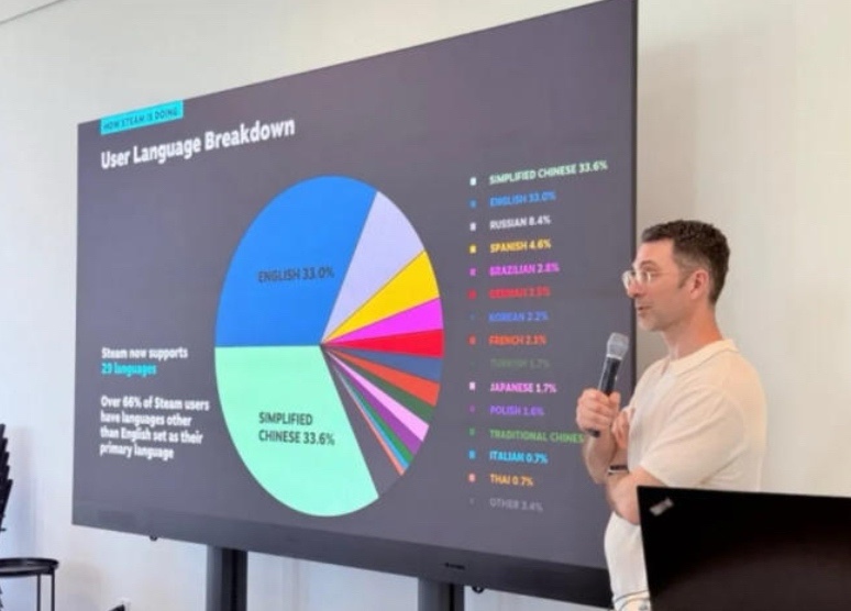 根據Peterson分享的數據,目前簡體中文玩家已經超過英語,成爲Steam上第一大用戶羣體,佔比高達33.6%。
