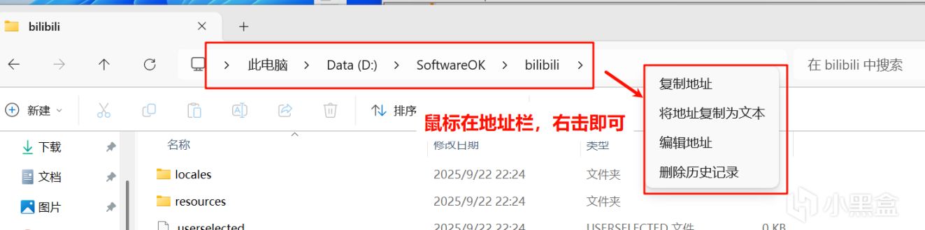 或在地址栏直接右键点击 ,选择"将地址复制为文本**"