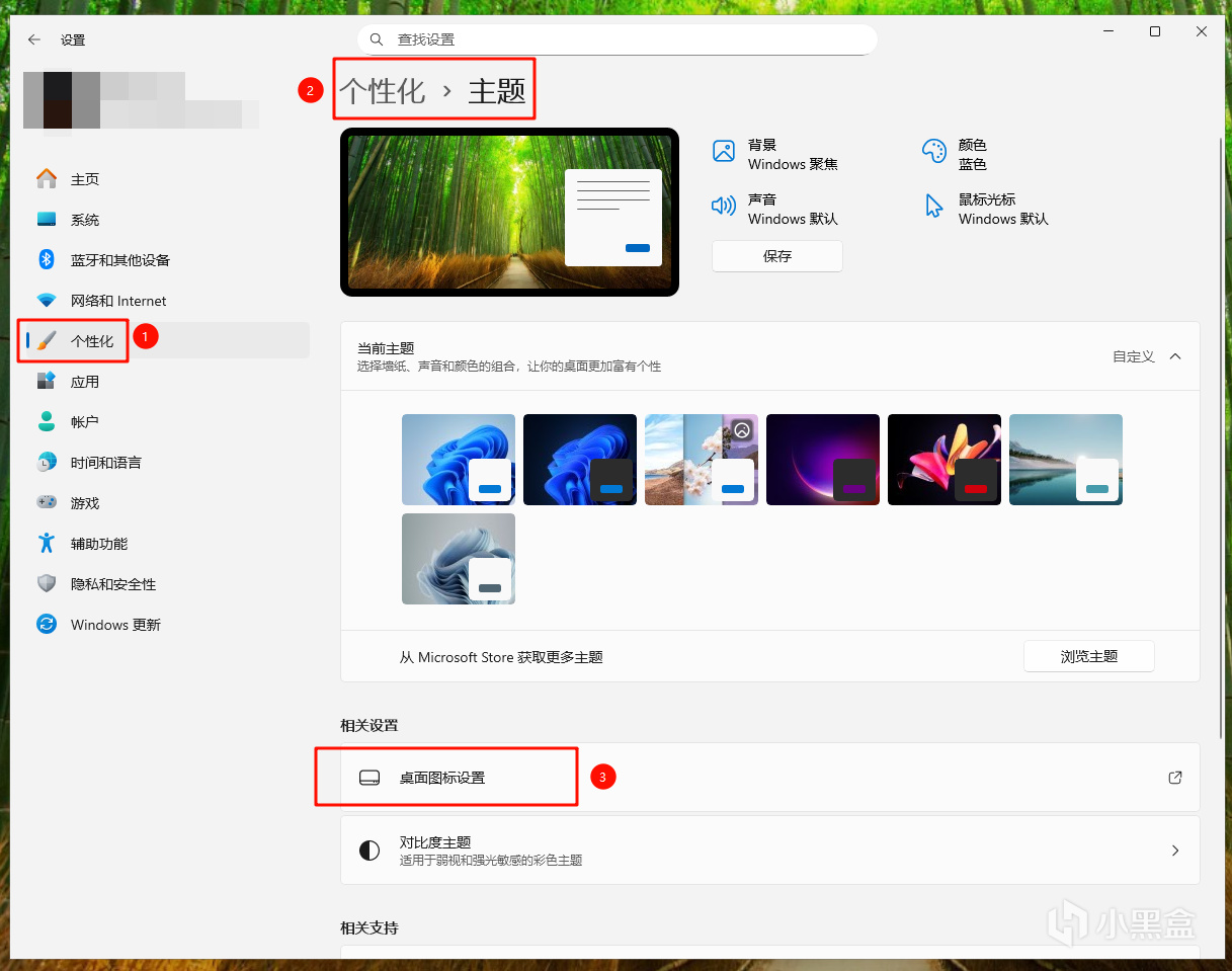 右键点击桌面 → 选择"个性化" → 进入"主题"选项